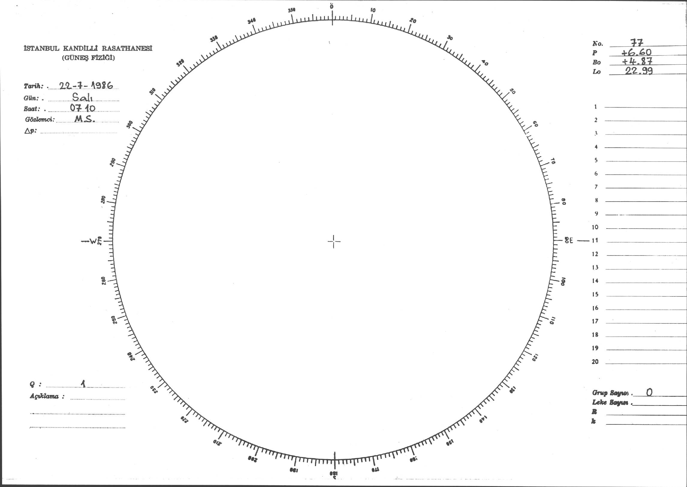 Güneş Lekesi Çizimi - 22.07.1986