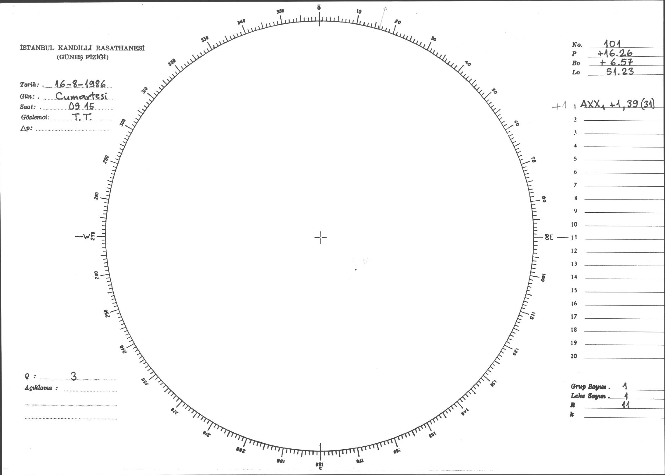 Güneş Lekesi Çizimi - 16.08.1986