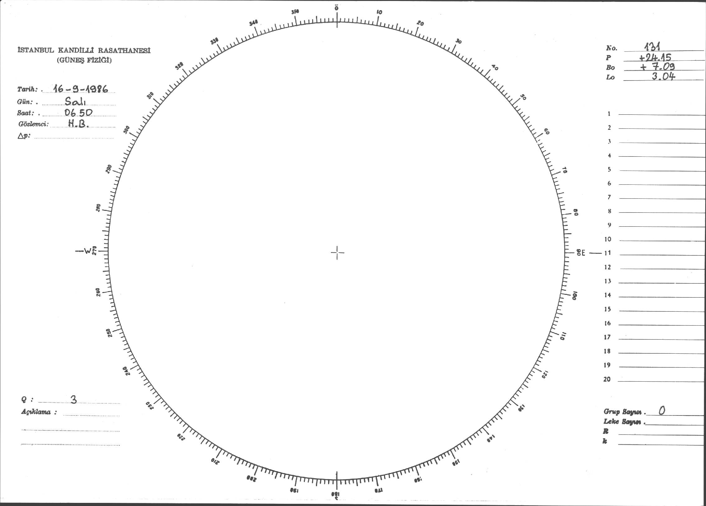 Güneş Lekesi Çizimi - 16.09.1986