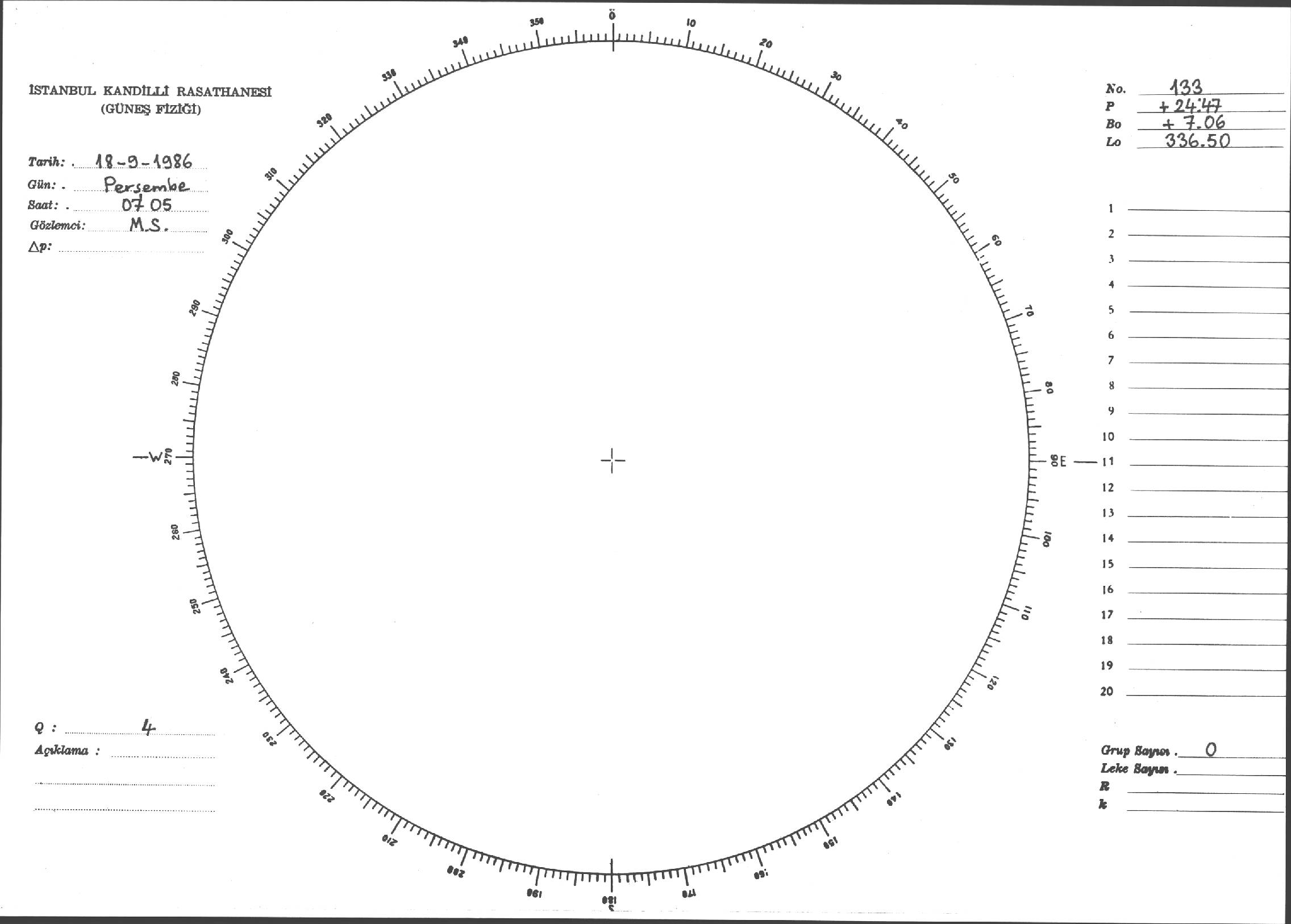 Güneş Lekesi Çizimi - 18.09.1986