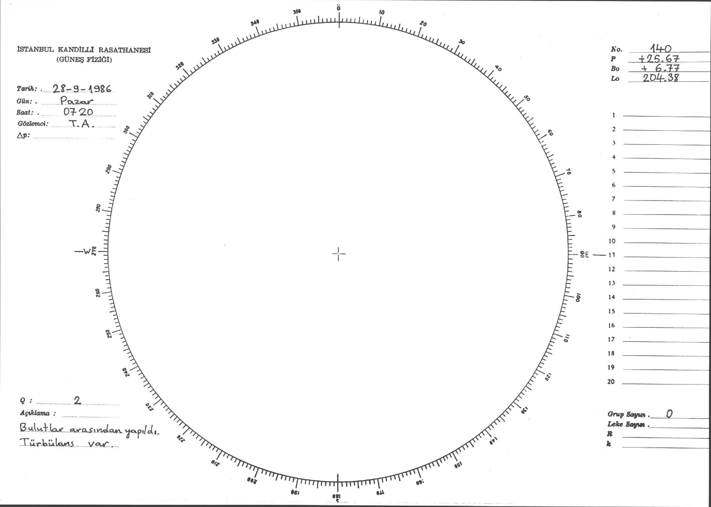 Güneş Lekesi Çizimi - 28.09.1986