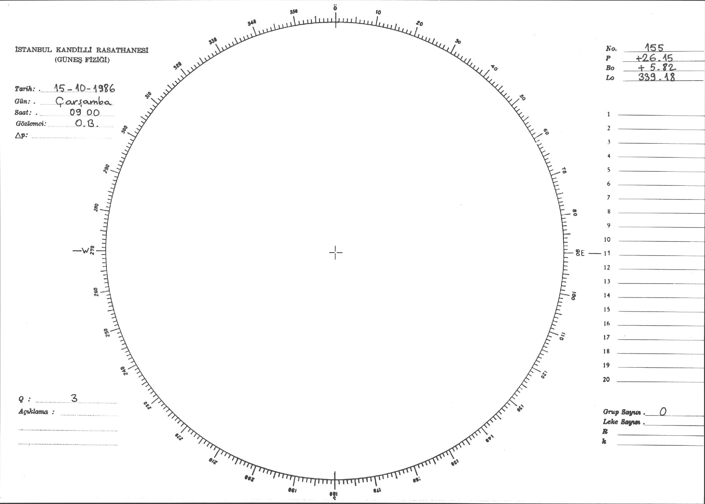 Güneş Lekesi Çizimi - 15.10.1986