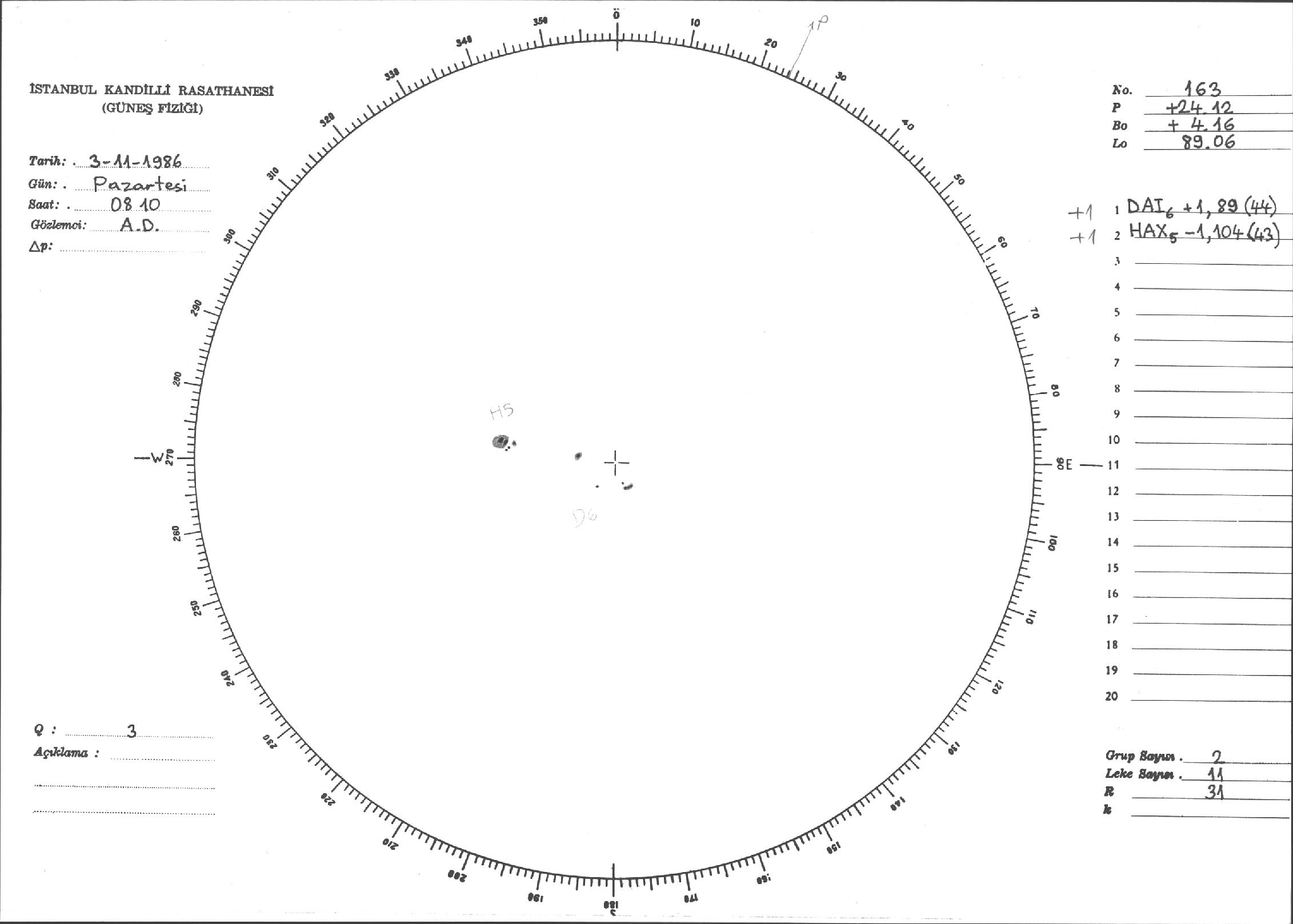 Güneş Lekesi Çizimi - 03.11.1986