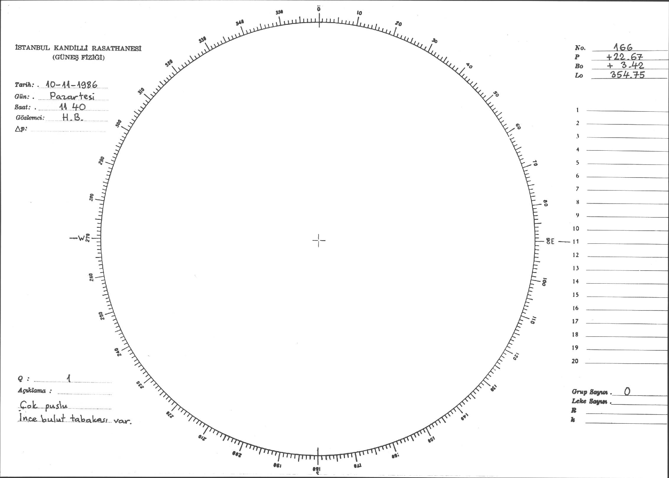 Güneş Lekesi Çizimi - 10.11.1986