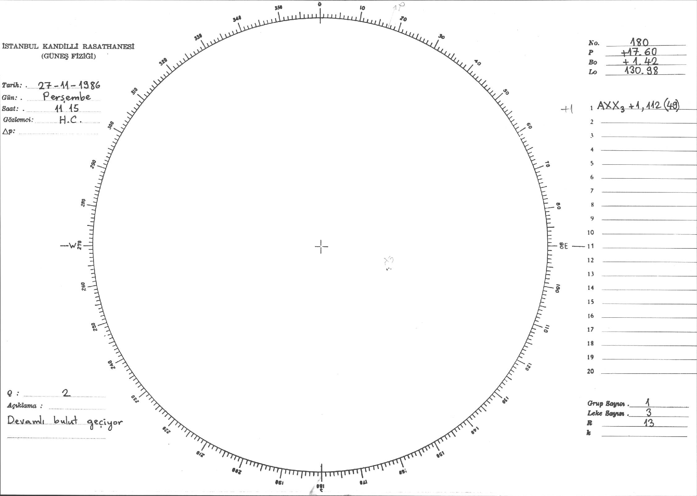 Güneş Lekesi Çizimi - 27.11.1986