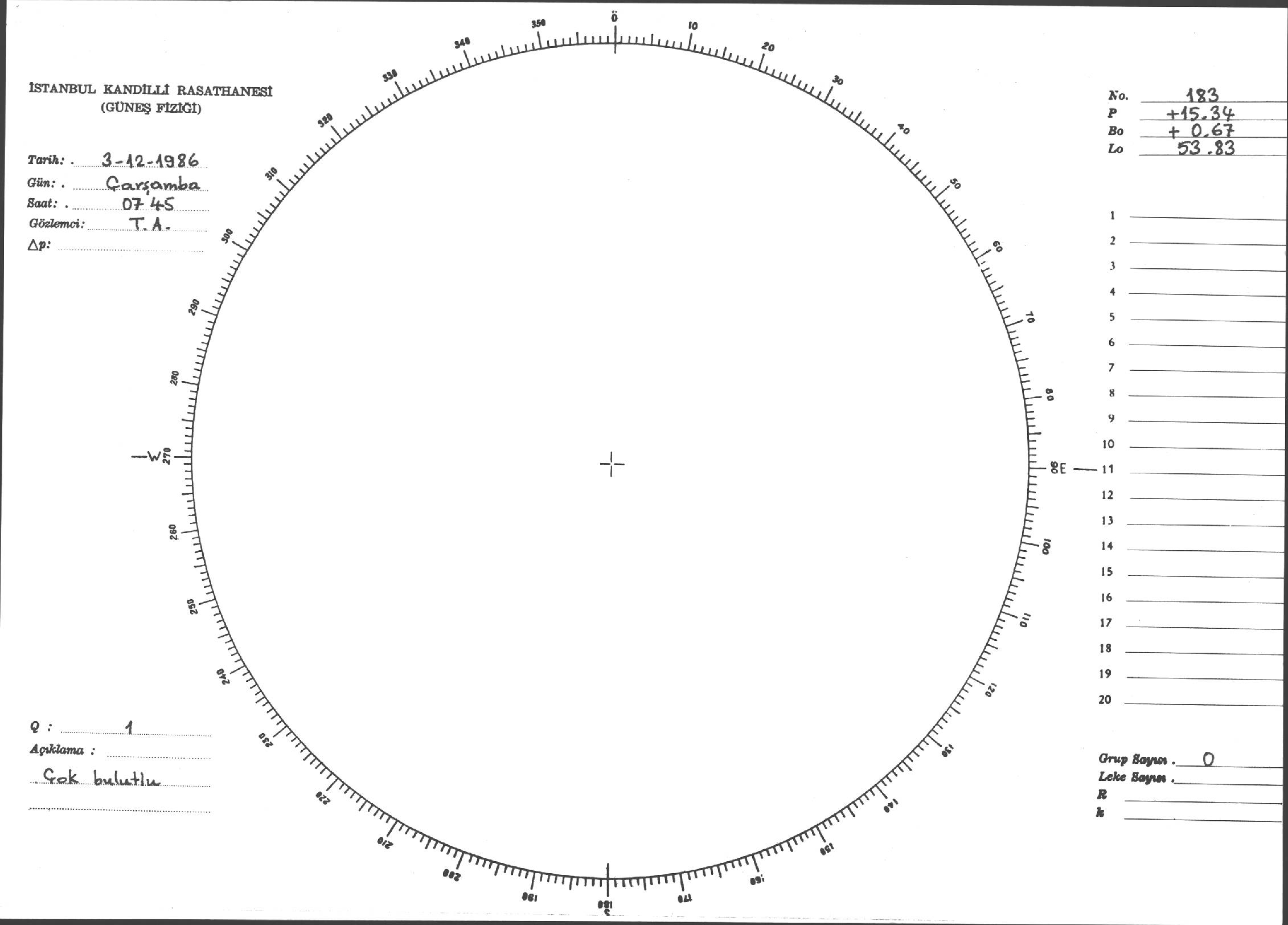 Güneş Lekesi Çizimi - 03.12.1986