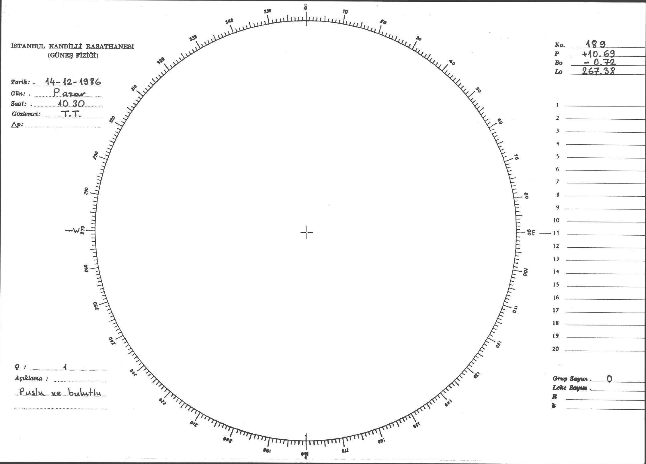 Güneş Lekesi Çizimi - 14.12.1986