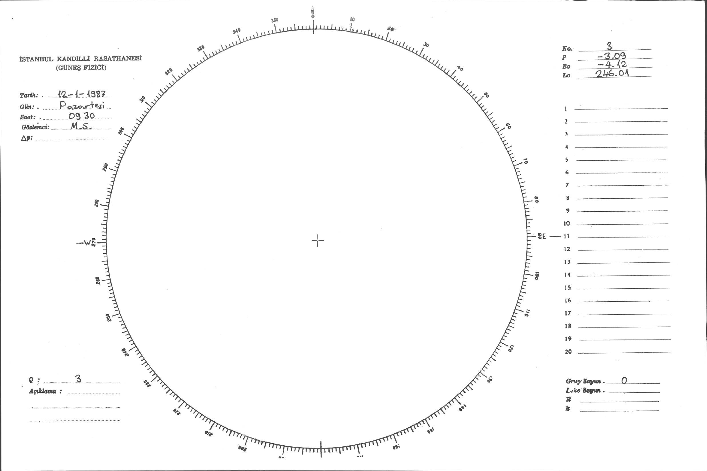 Güneş Lekesi Çizimi - 12.01.1987