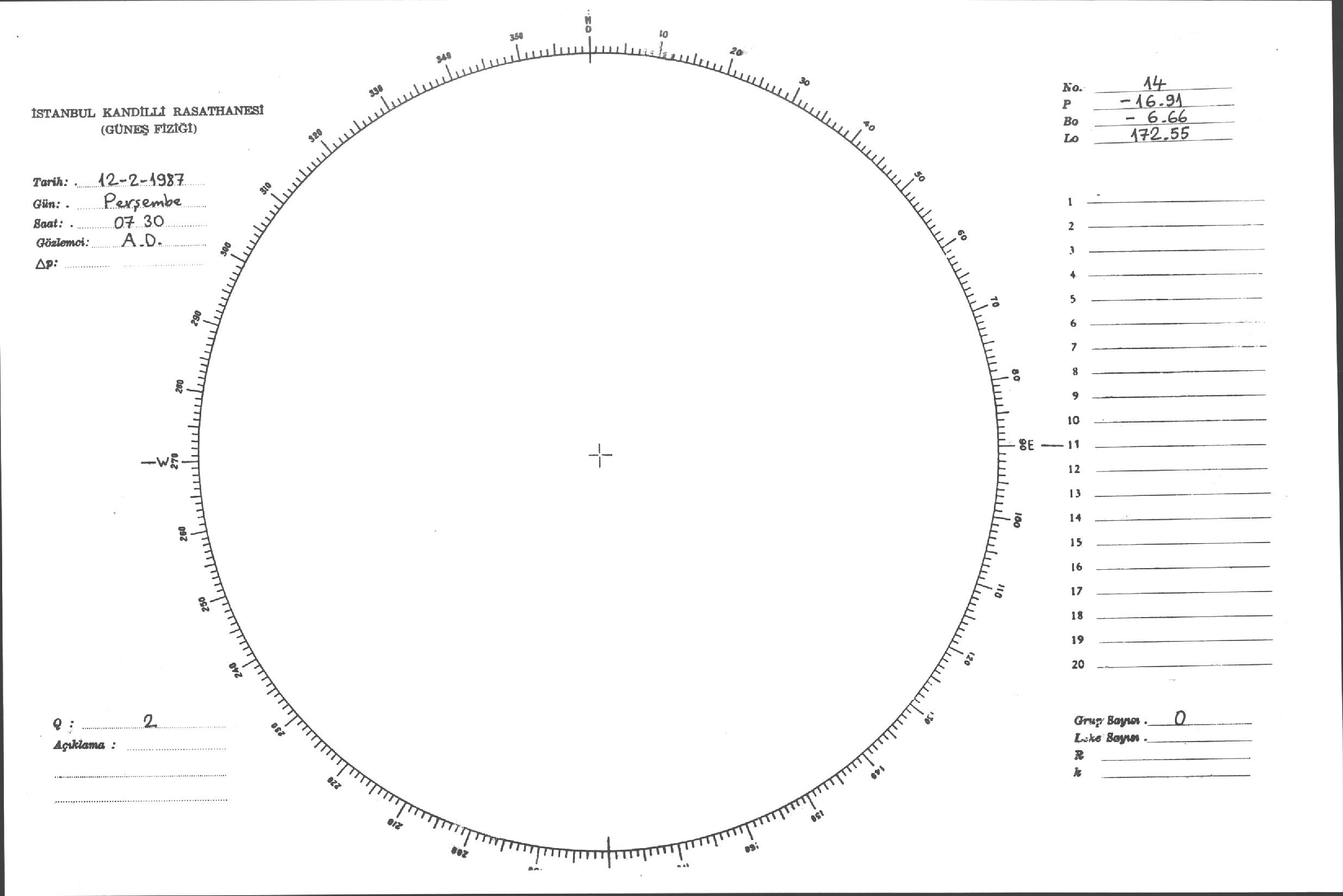 Güneş Lekesi Çizimi - 12.02.1987