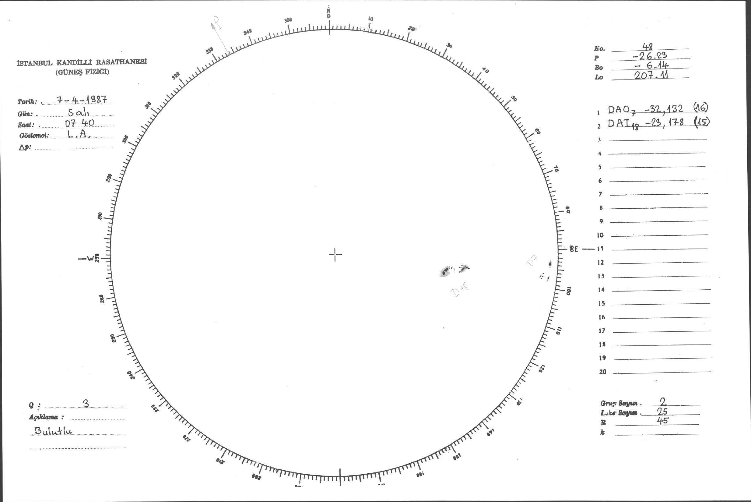 Güneş Lekesi Çizimi - 07.04.1987