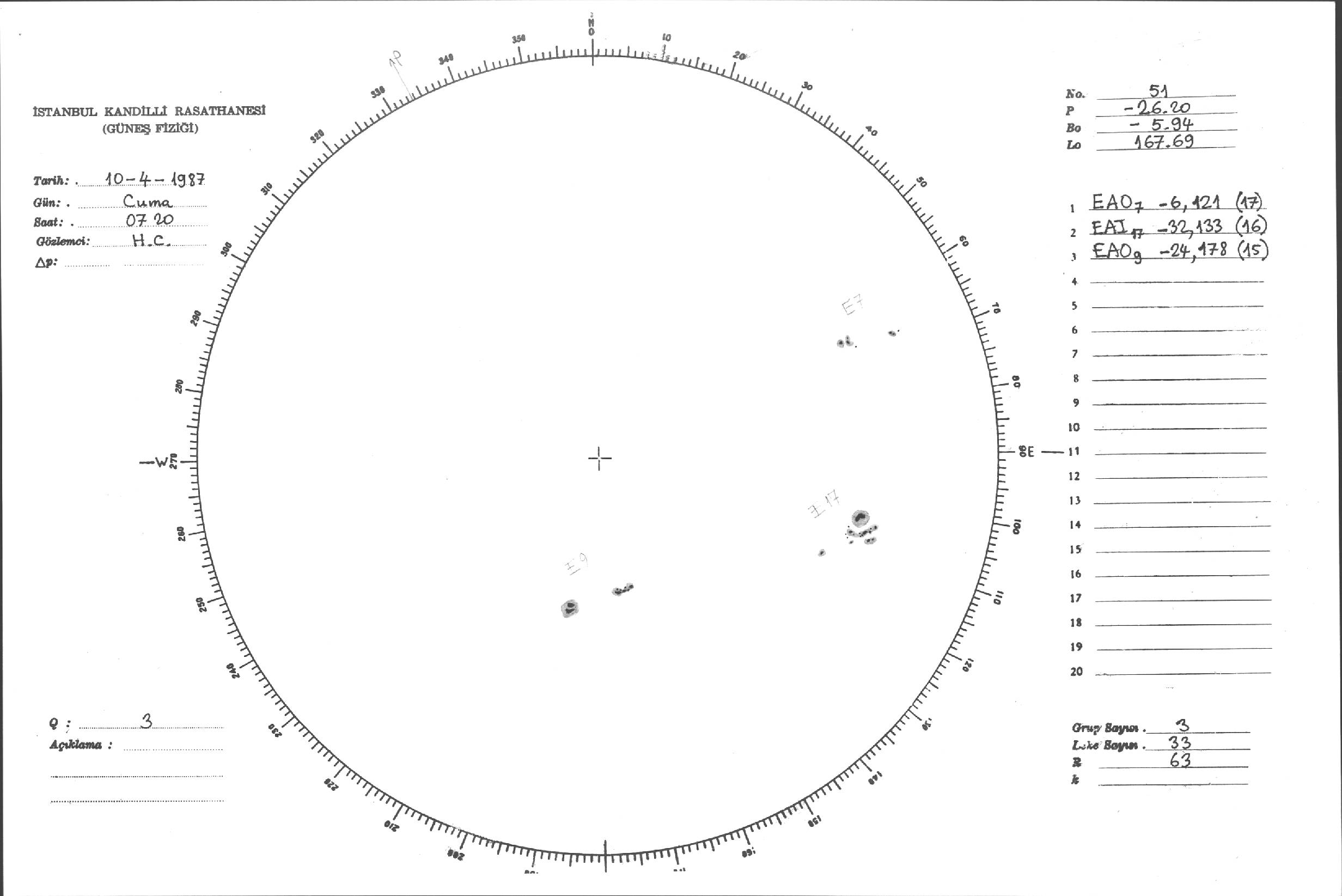 Güneş Lekesi Çizimi - 10.04.1987