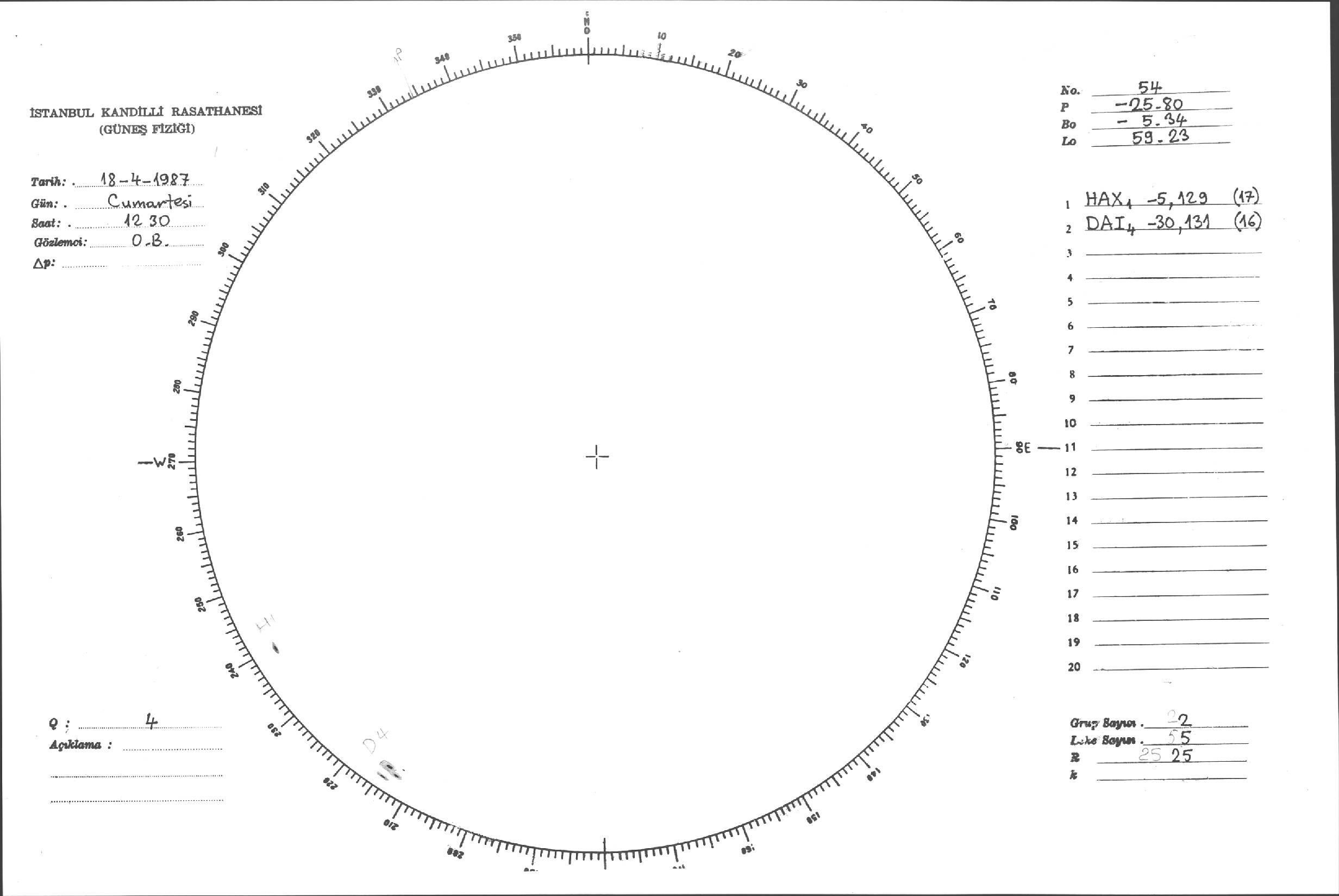 Güneş Lekesi Çizimi - 18.04.1987