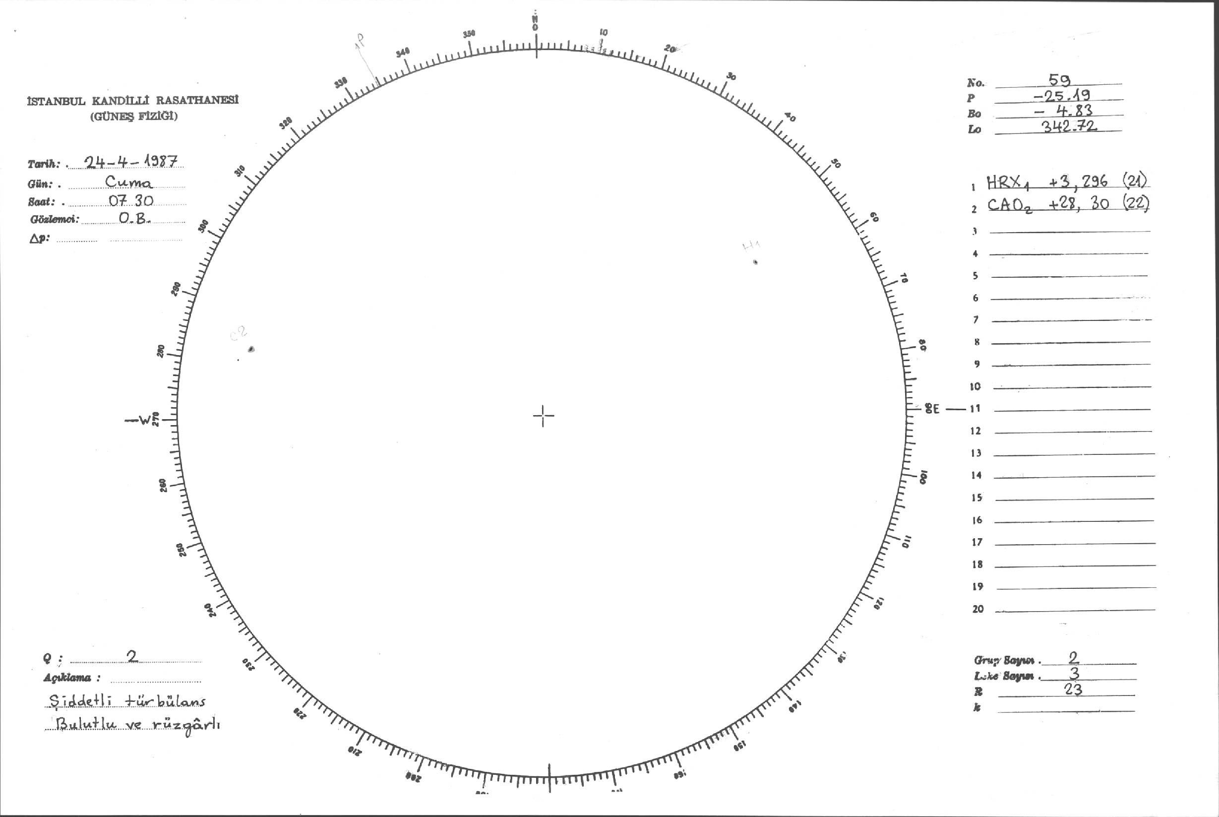 Güneş Lekesi Çizimi - 24.04.1987