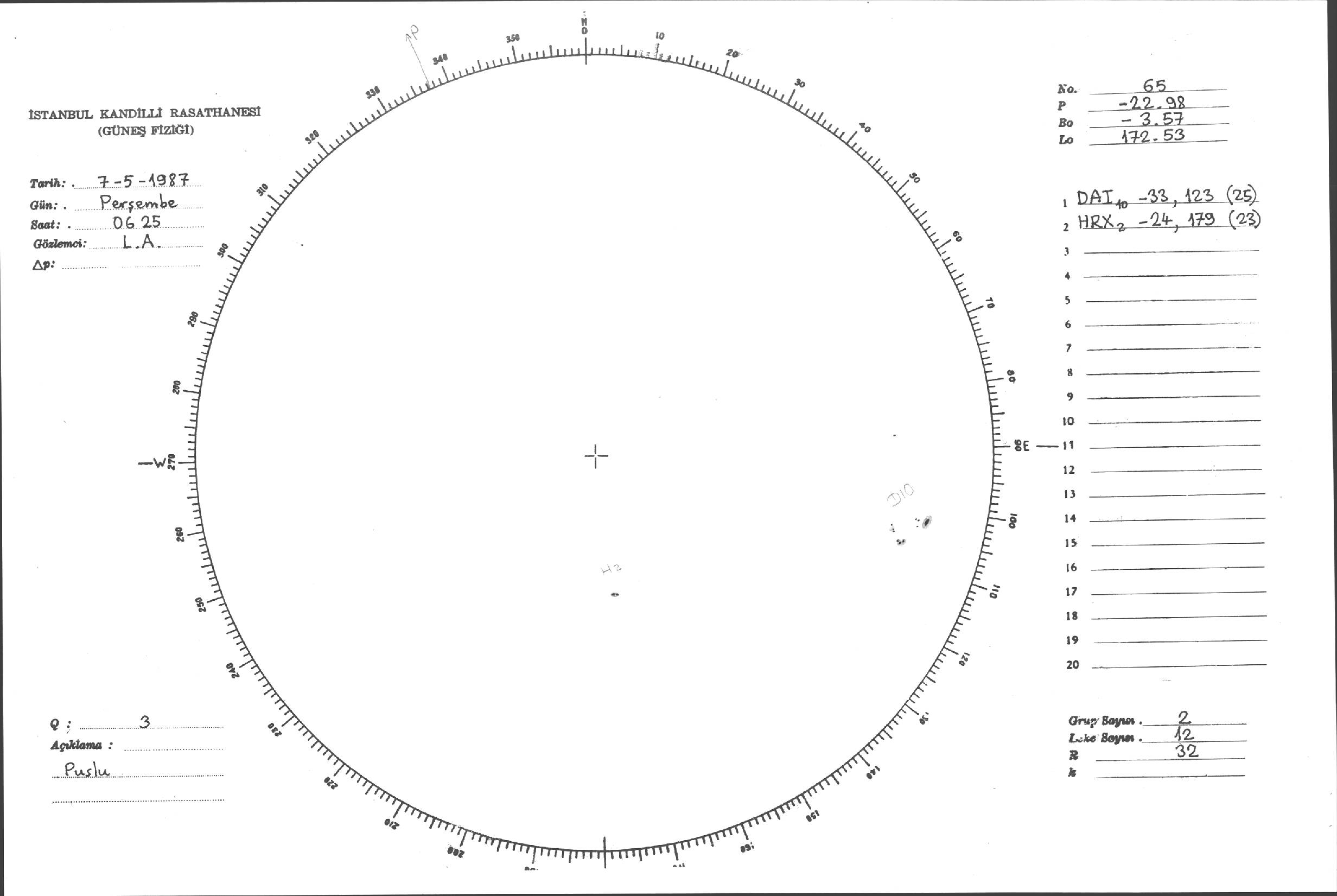 Güneş Lekesi Çizimi - 07.05.1987