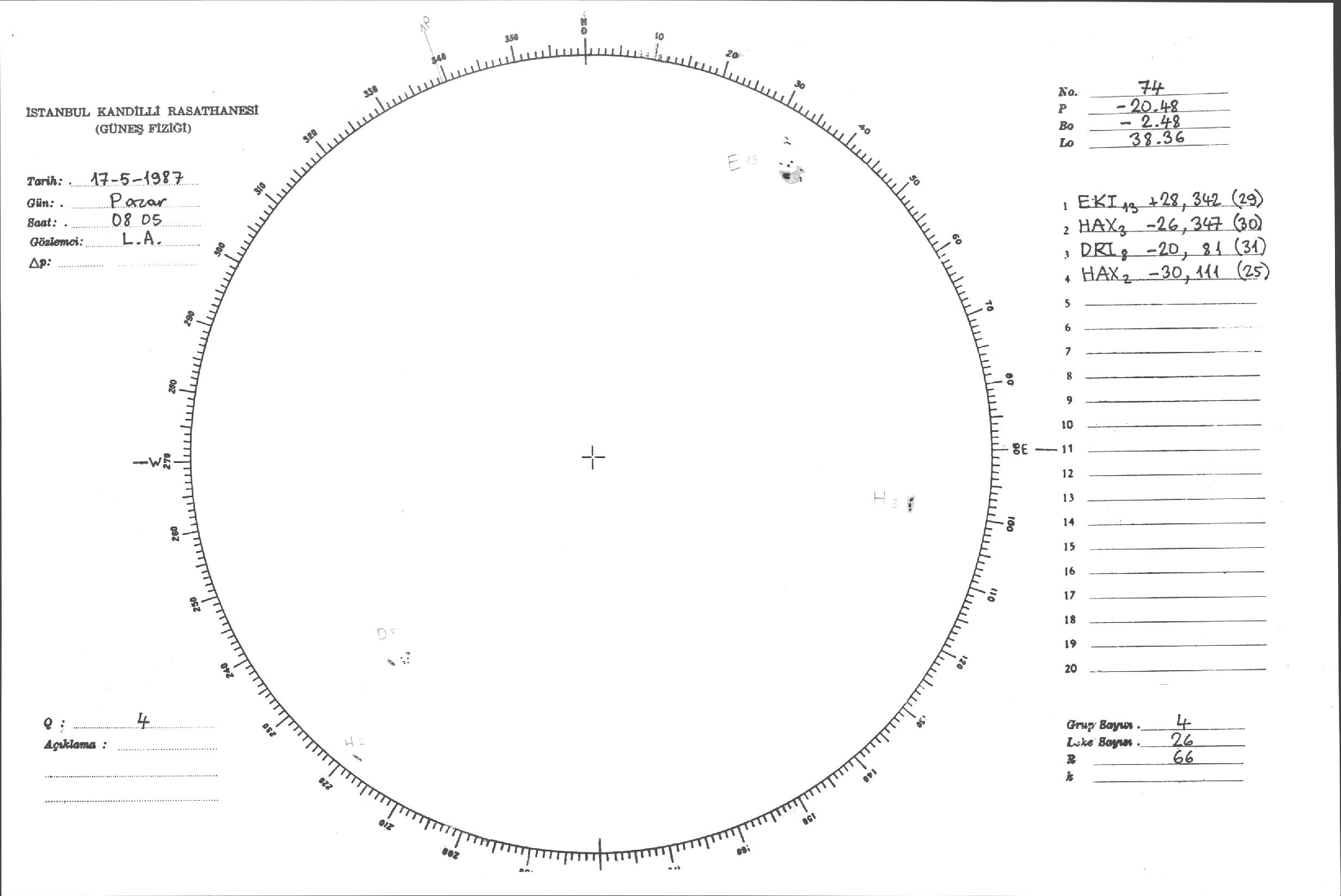 Güneş Lekesi Çizimi - 17.05.1987