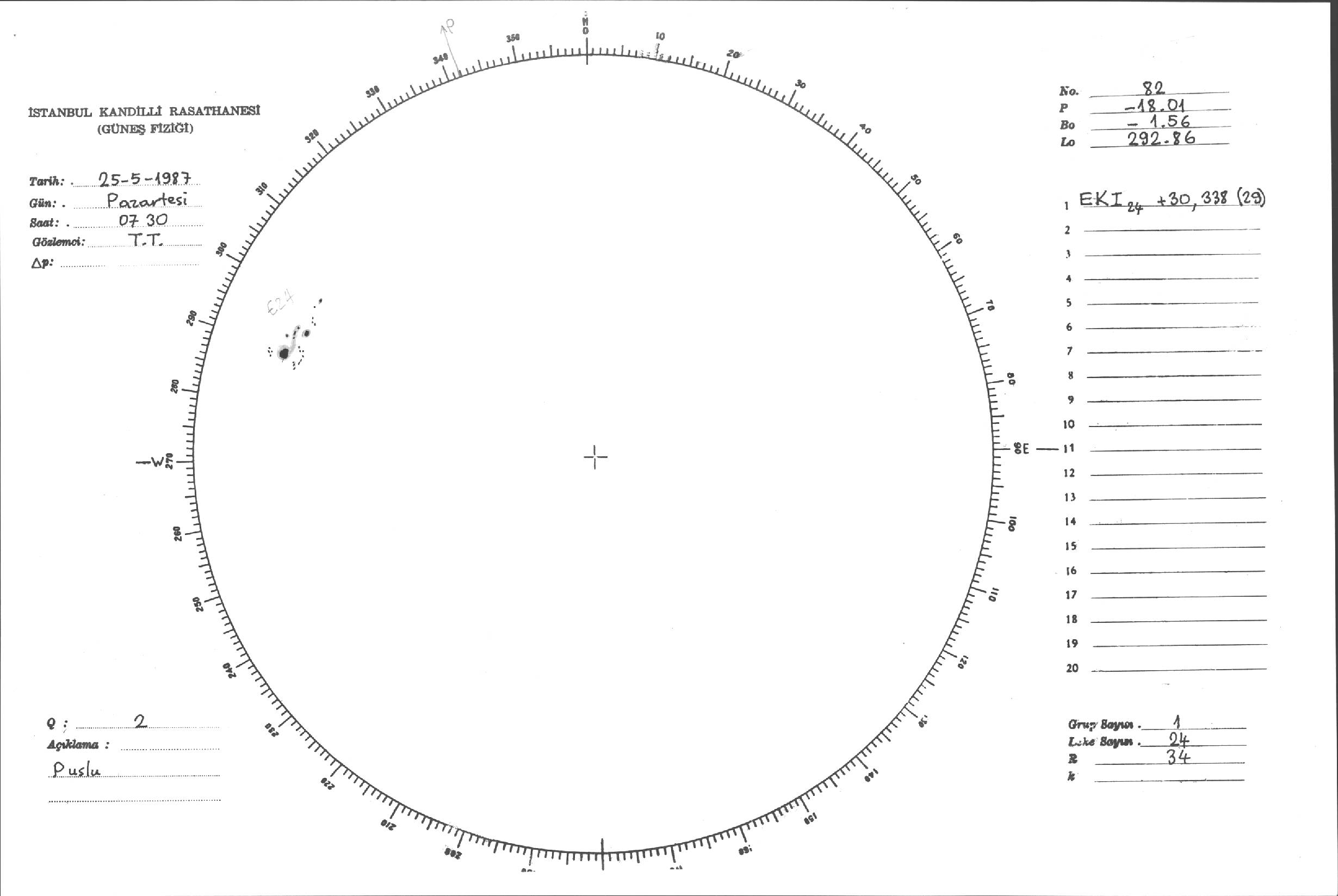 Güneş Lekesi Çizimi - 25.05.1987