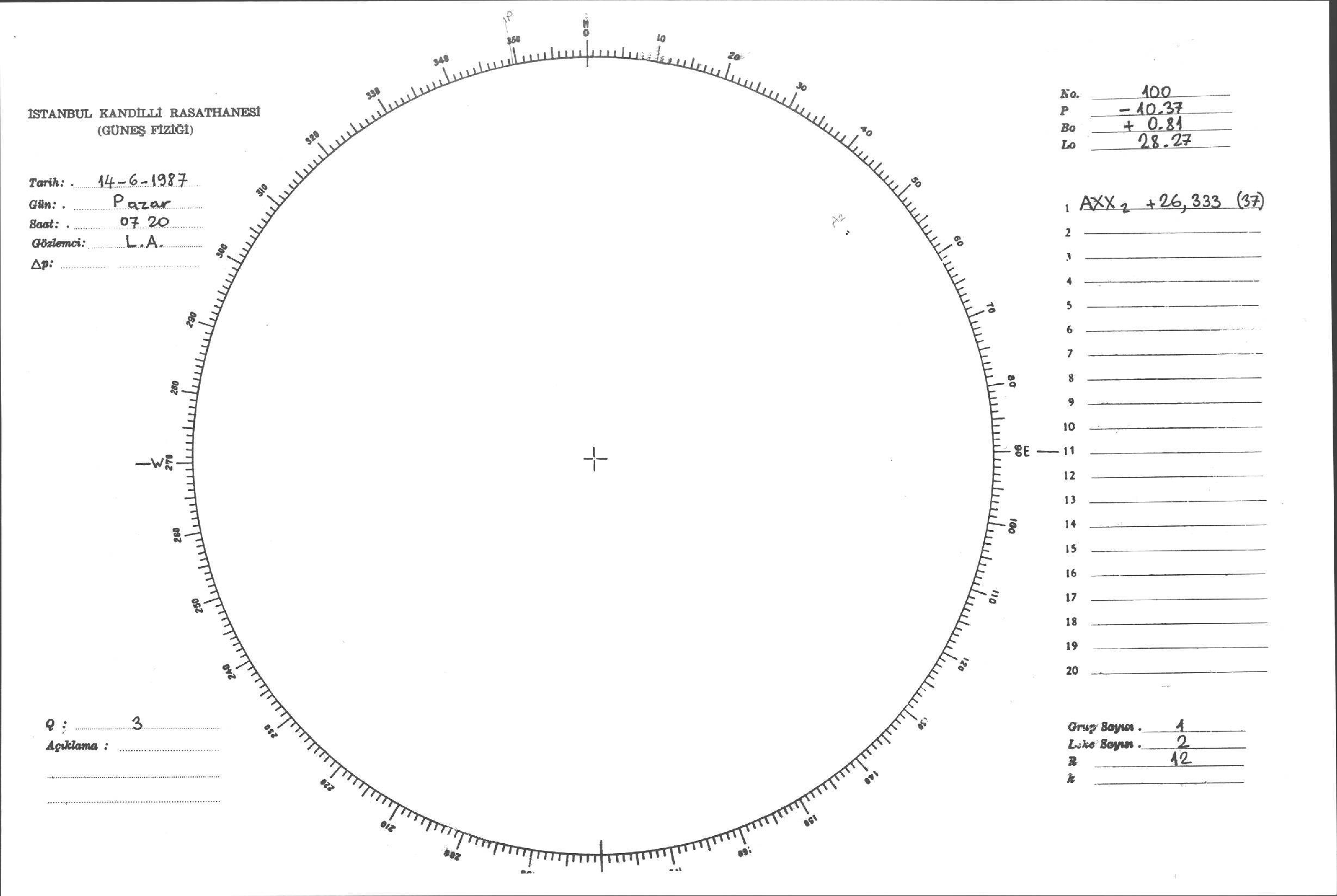 Güneş Lekesi Çizimi - 14.06.1987