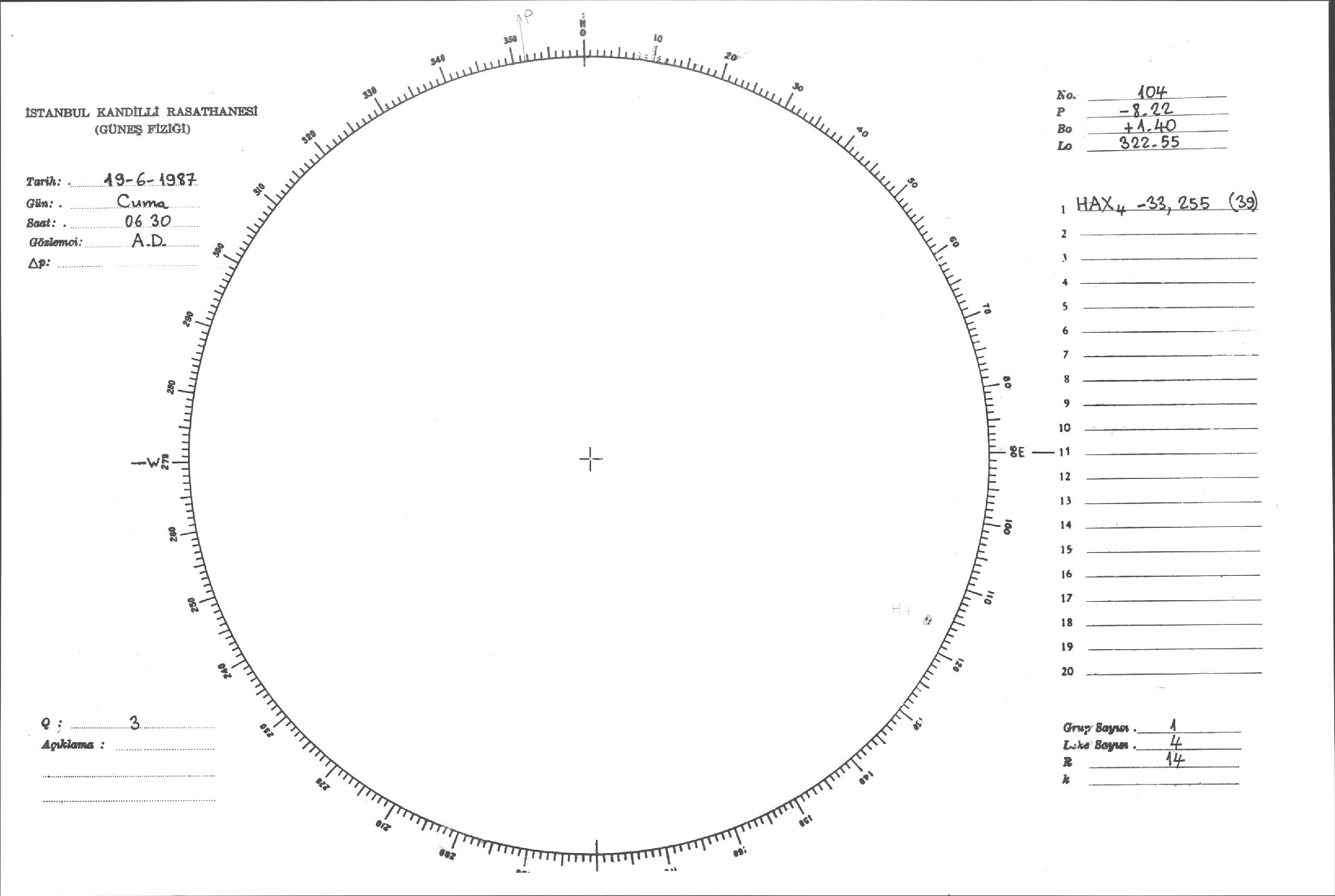 Güneş Lekesi Çizimi - 19.06.1987