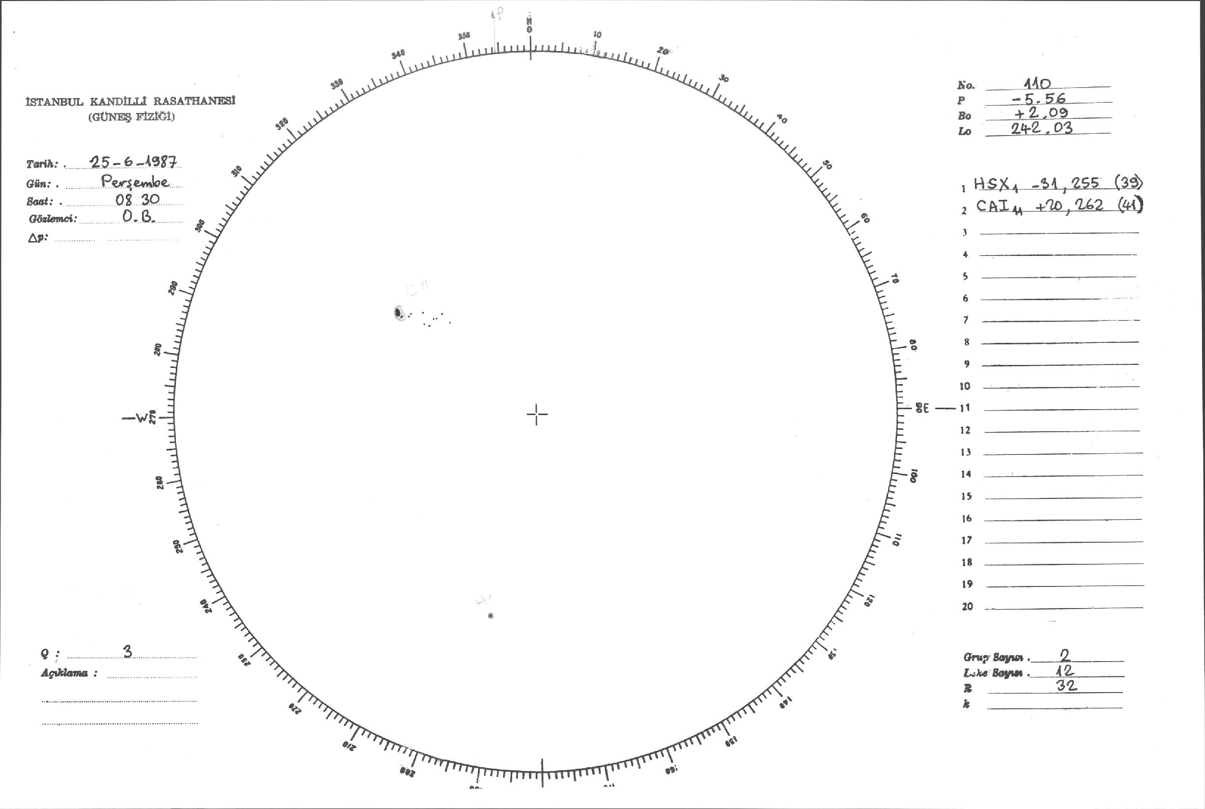 Güneş Lekesi Çizimi - 25.06.1987