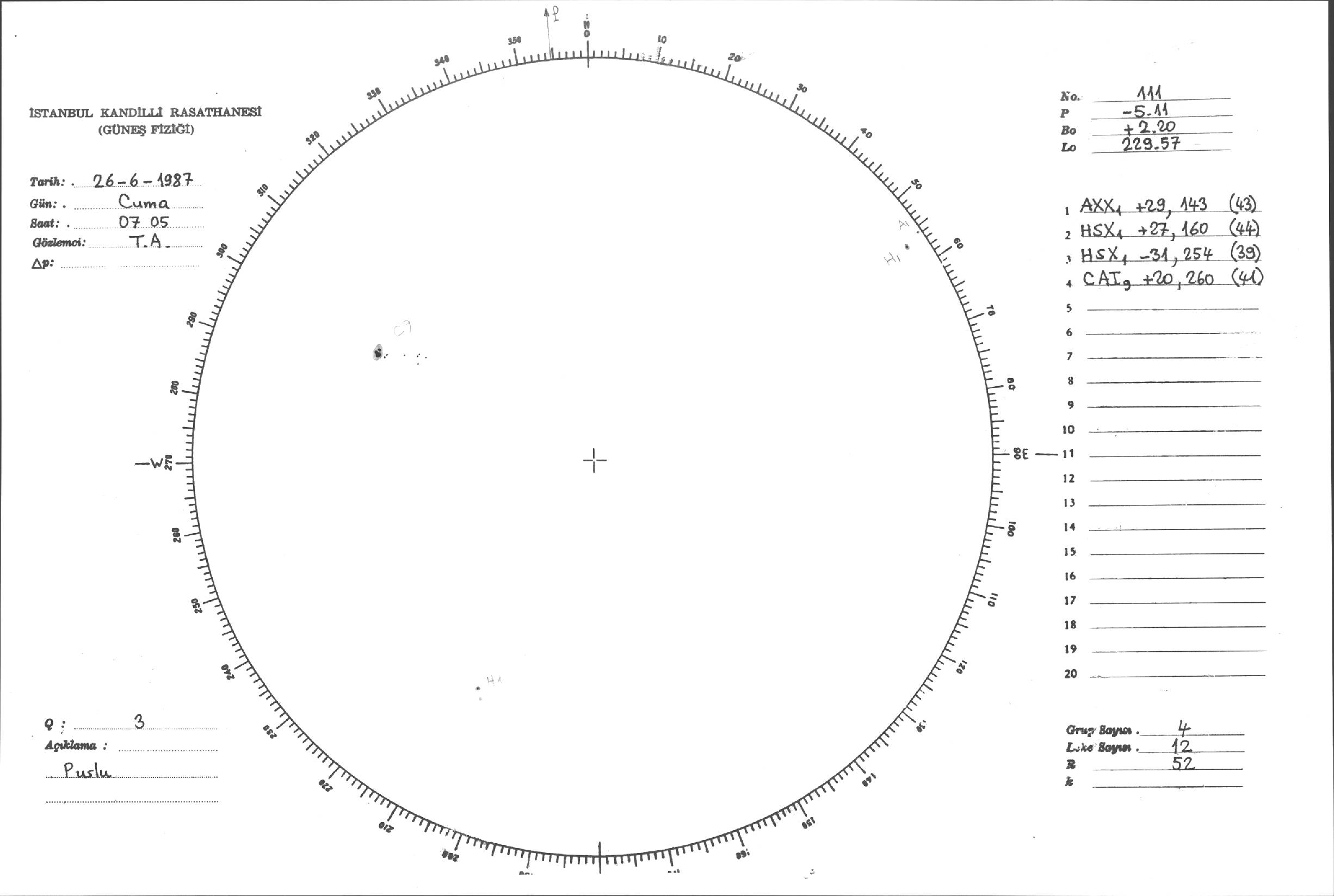 Güneş Lekesi Çizimi - 26.06.1987