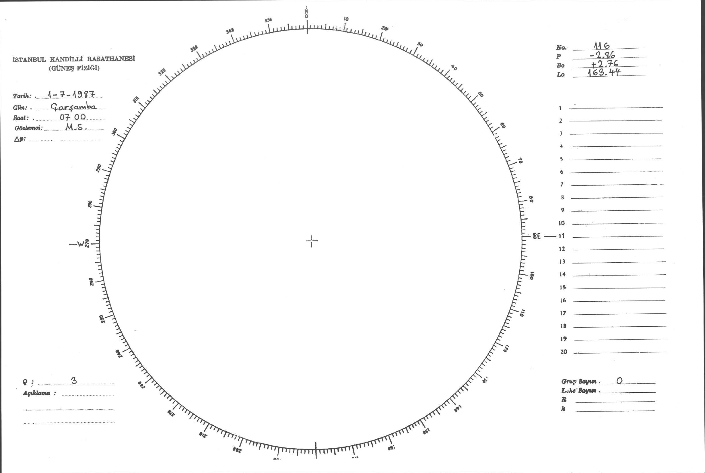 Güneş Lekesi Çizimi - 01.07.1987