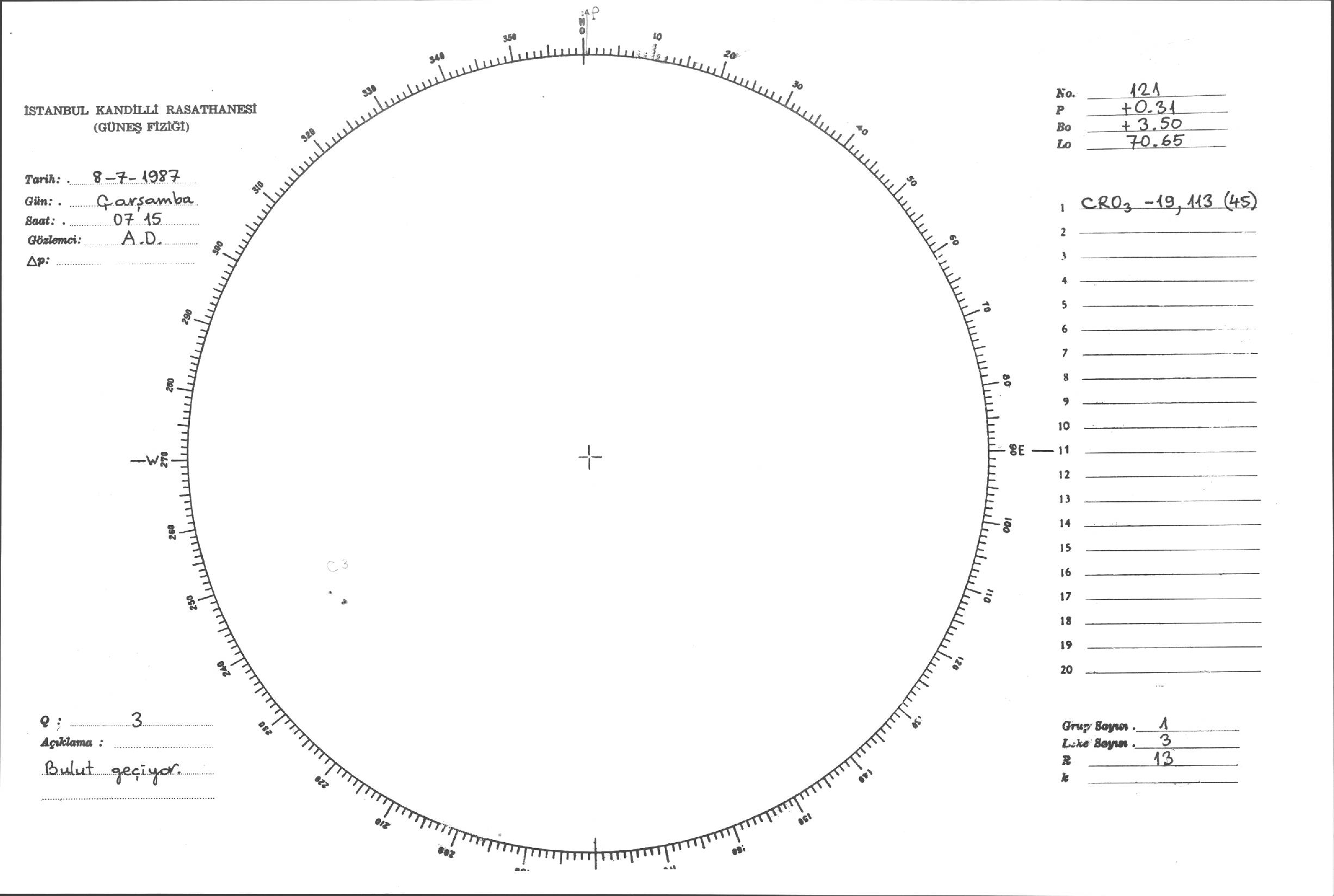 Güneş Lekesi Çizimi - 08.07.1987