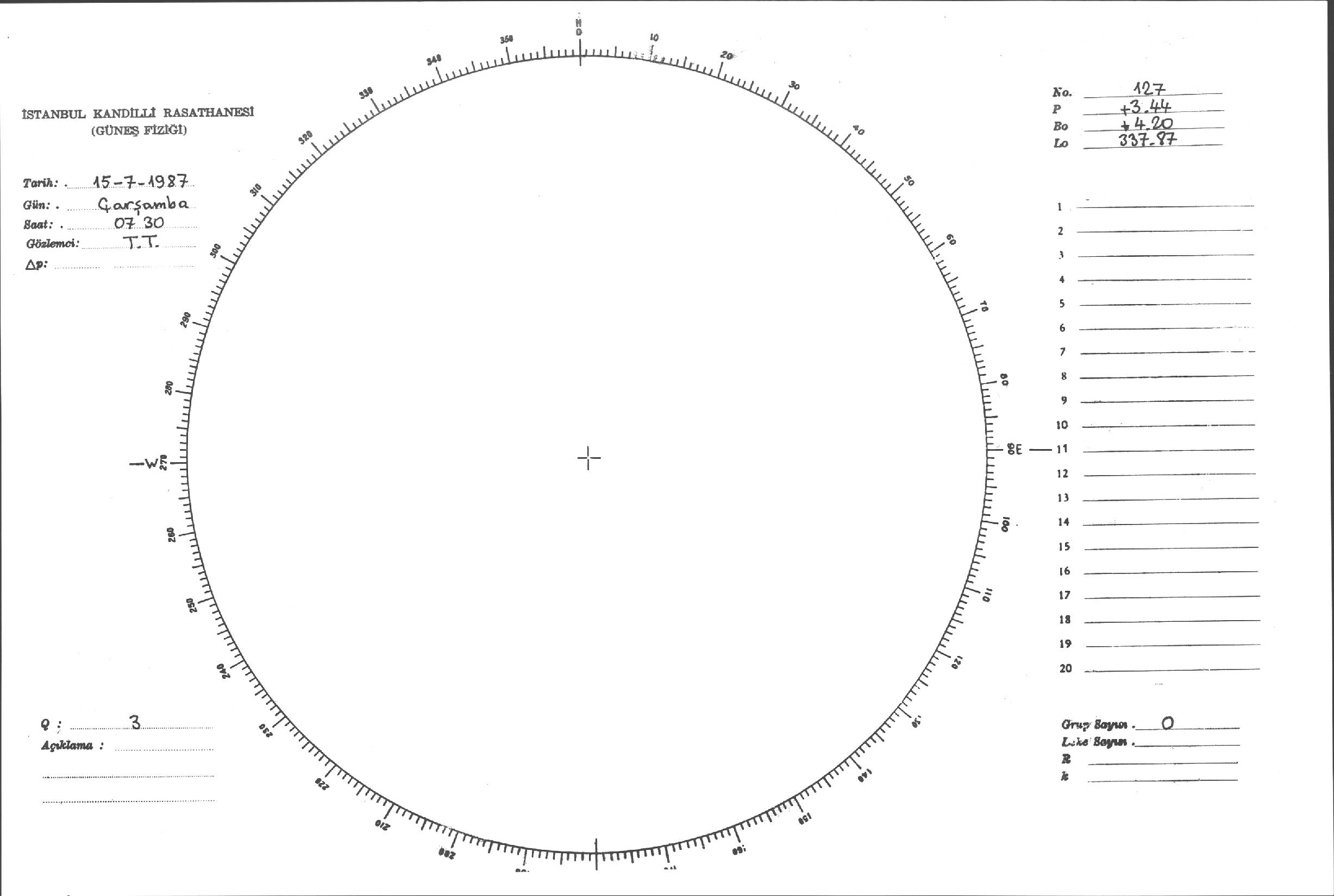 Güneş Lekesi Çizimi - 15.07.1987