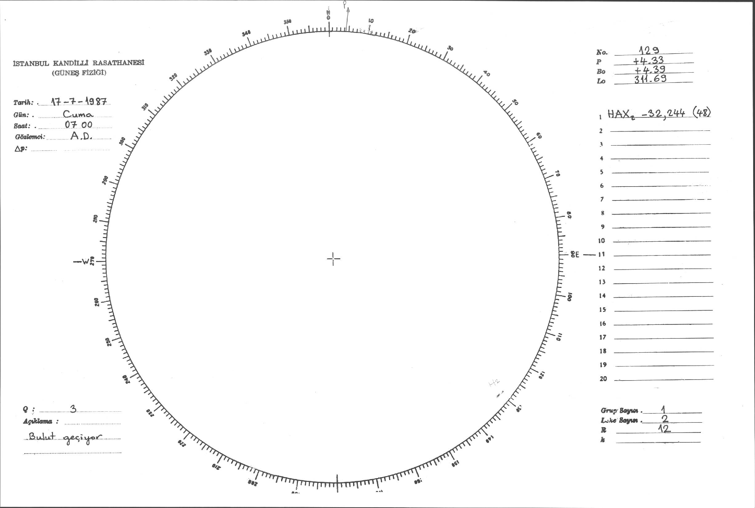 Güneş Lekesi Çizimi - 17.07.1987