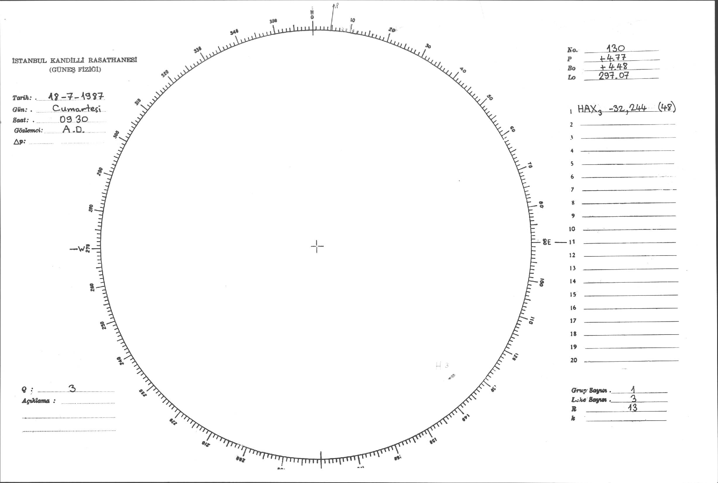 Güneş Lekesi Çizimi - 18.07.1987