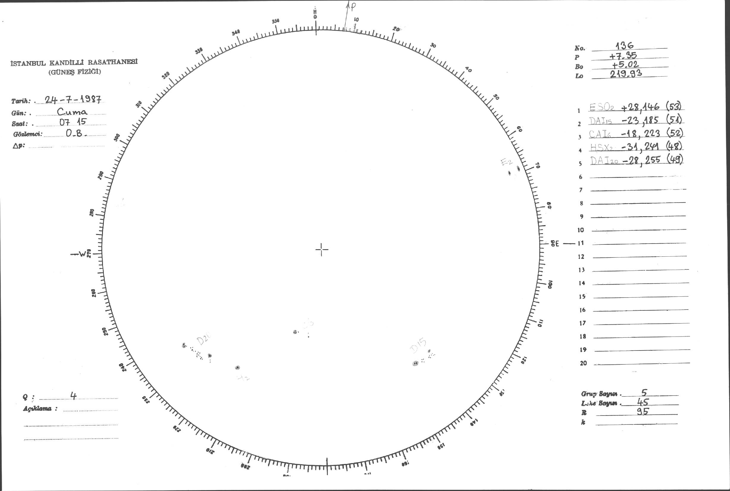 Güneş Lekesi Çizimi - 24.07.1987