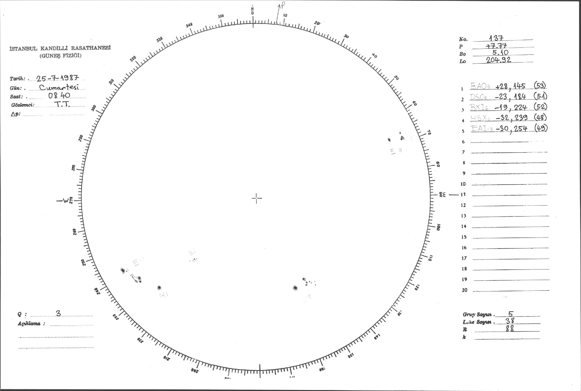 Güneş Lekesi Çizimi - 25.07.1987