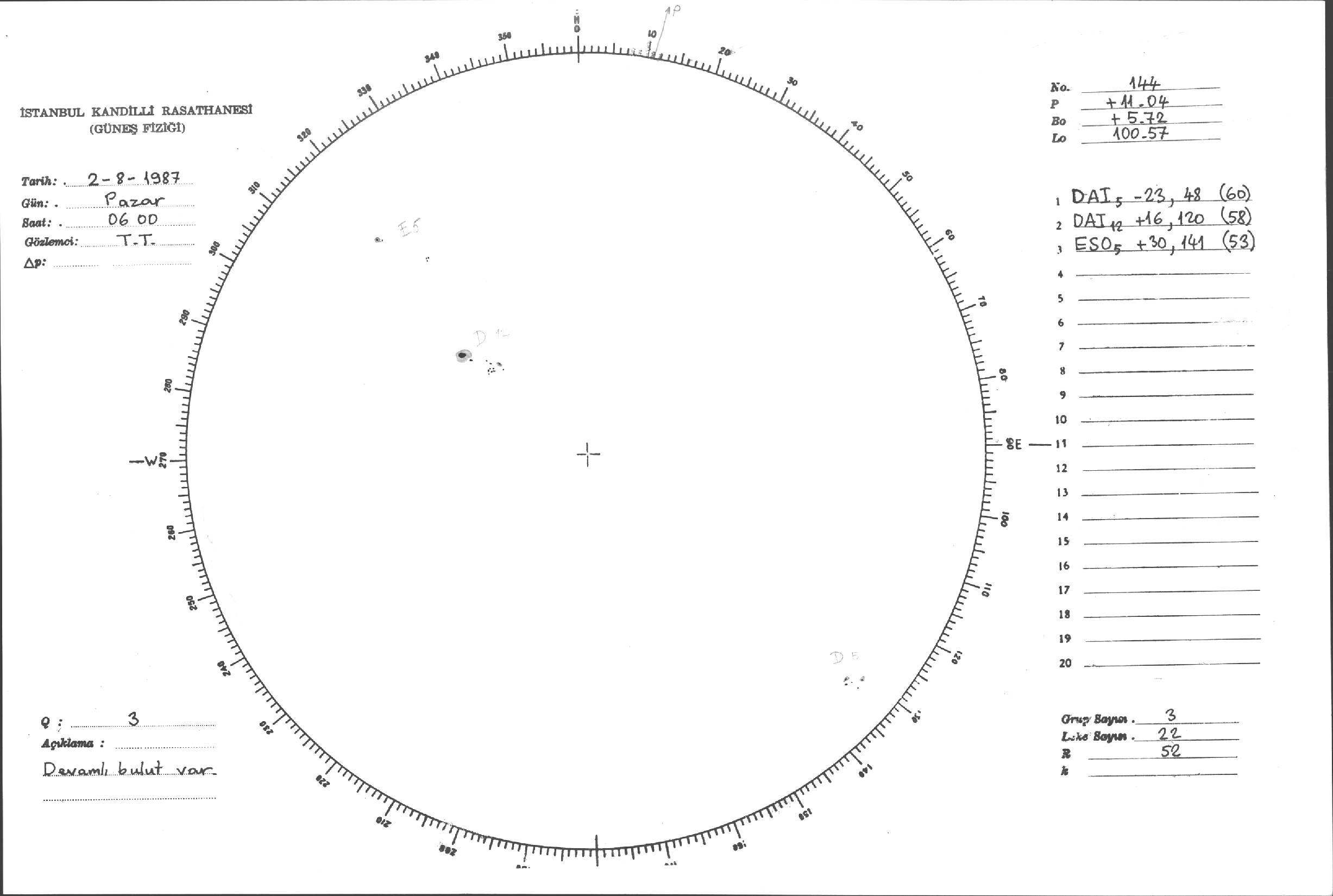 Güneş Lekesi Çizimi - 02.08.1987