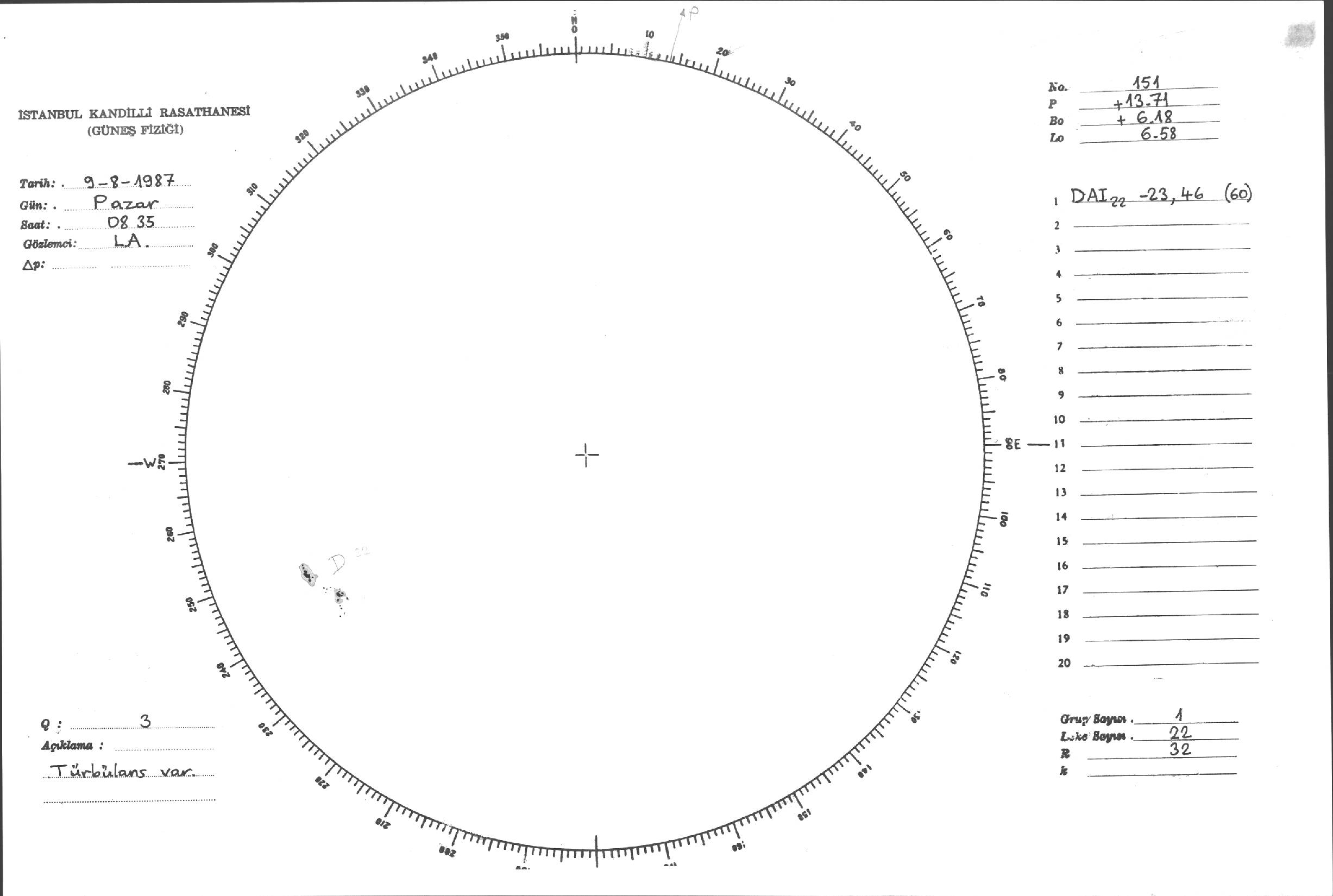 Güneş Lekesi Çizimi - 09.08.1987