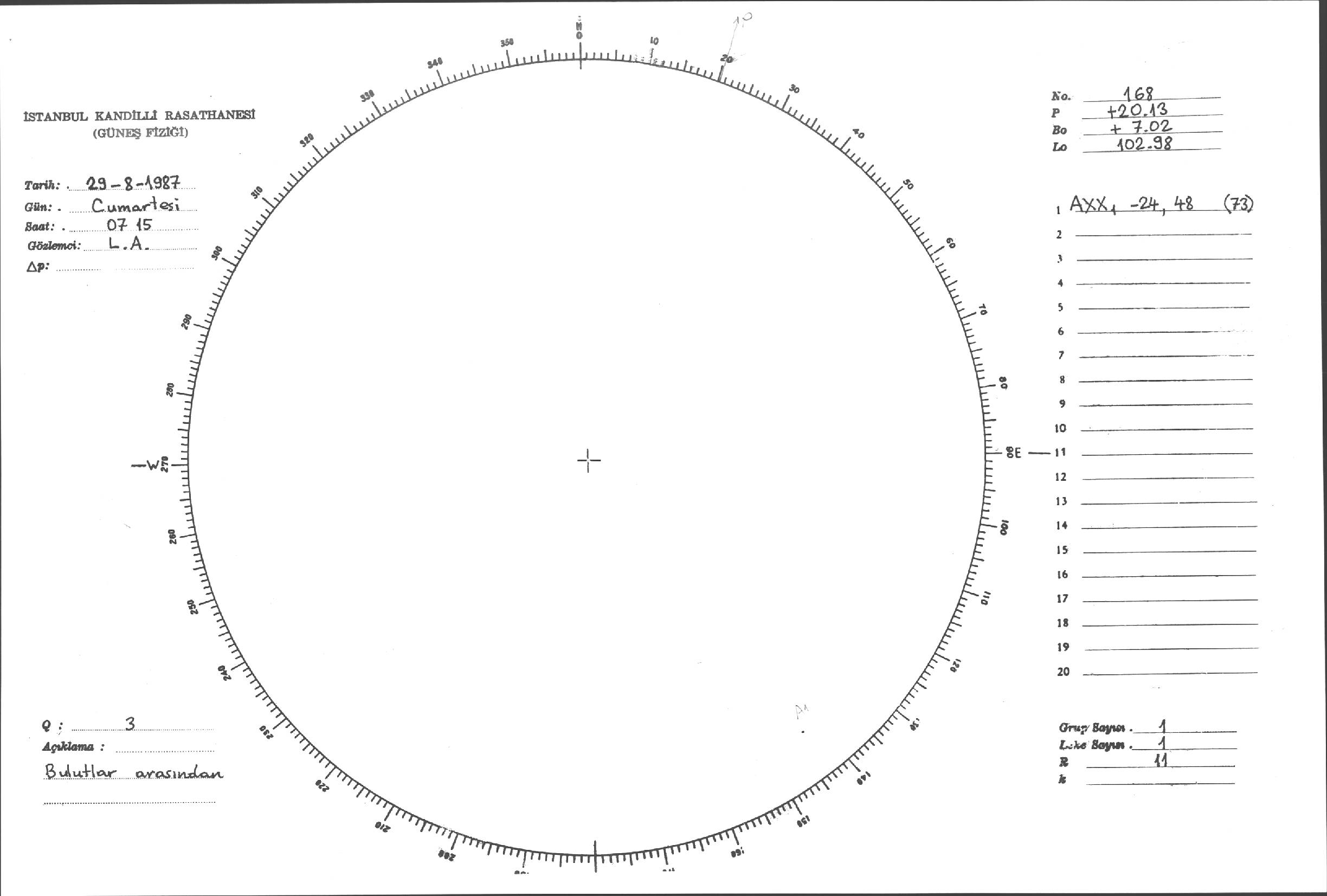 Güneş Lekesi Çizimi - 29.08.1987