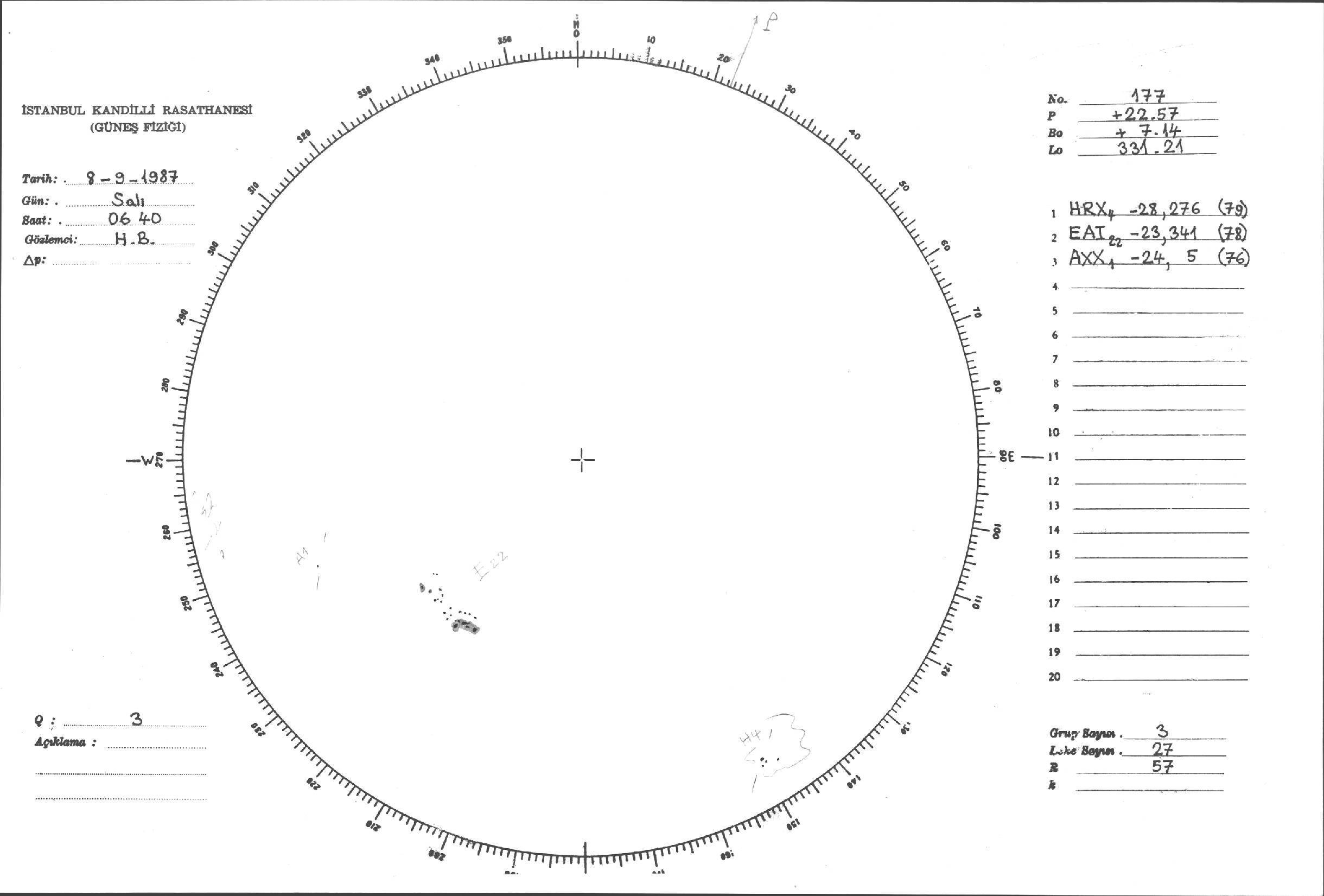 Güneş Lekesi Çizimi - 08.09.1987