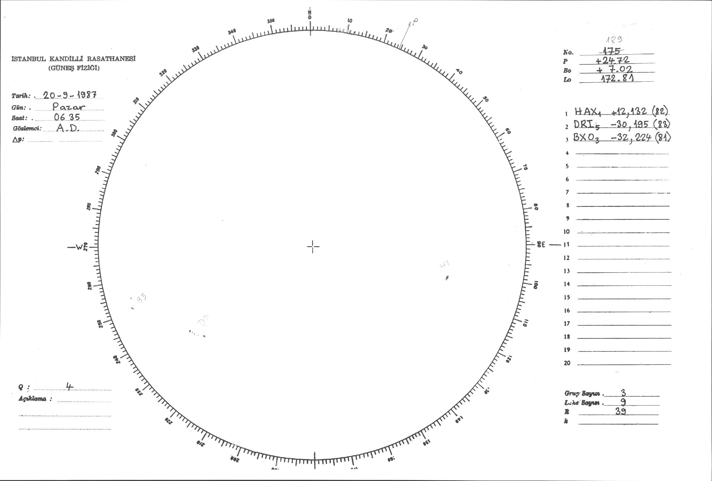 Güneş Lekesi Çizimi - 20.09.1987