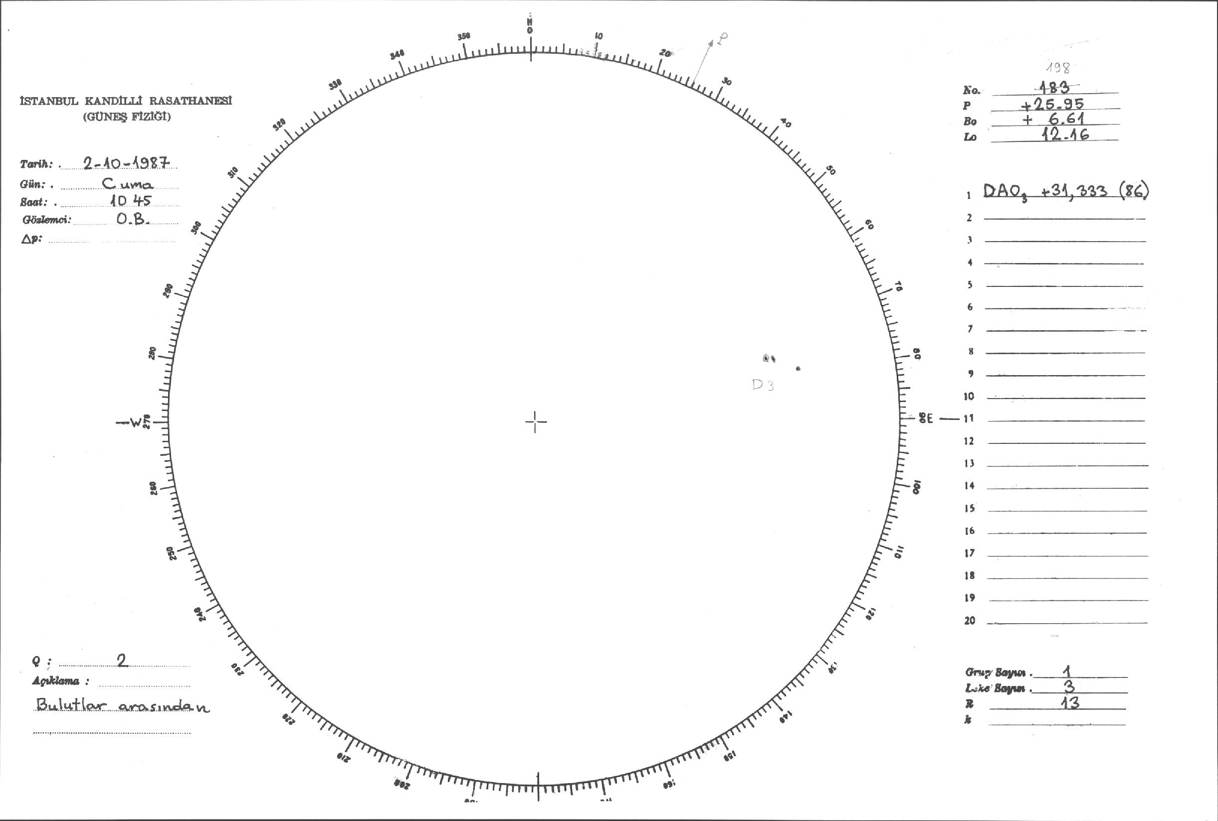 Güneş Lekesi Çizimi - 02.10.1987