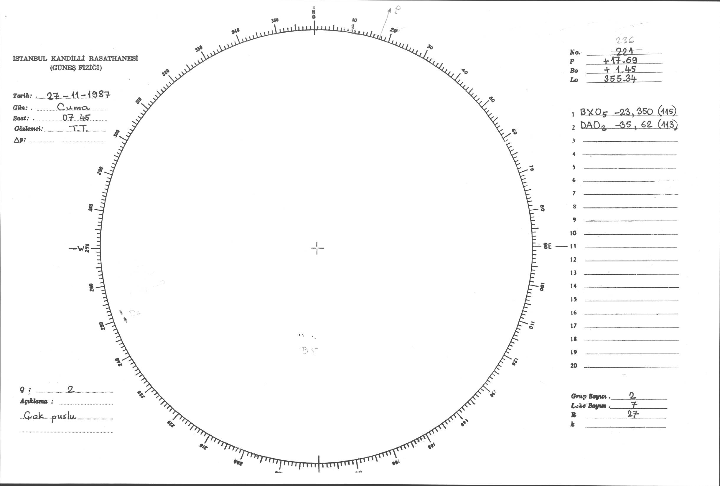 Güneş Lekesi Çizimi - 27.11.1987