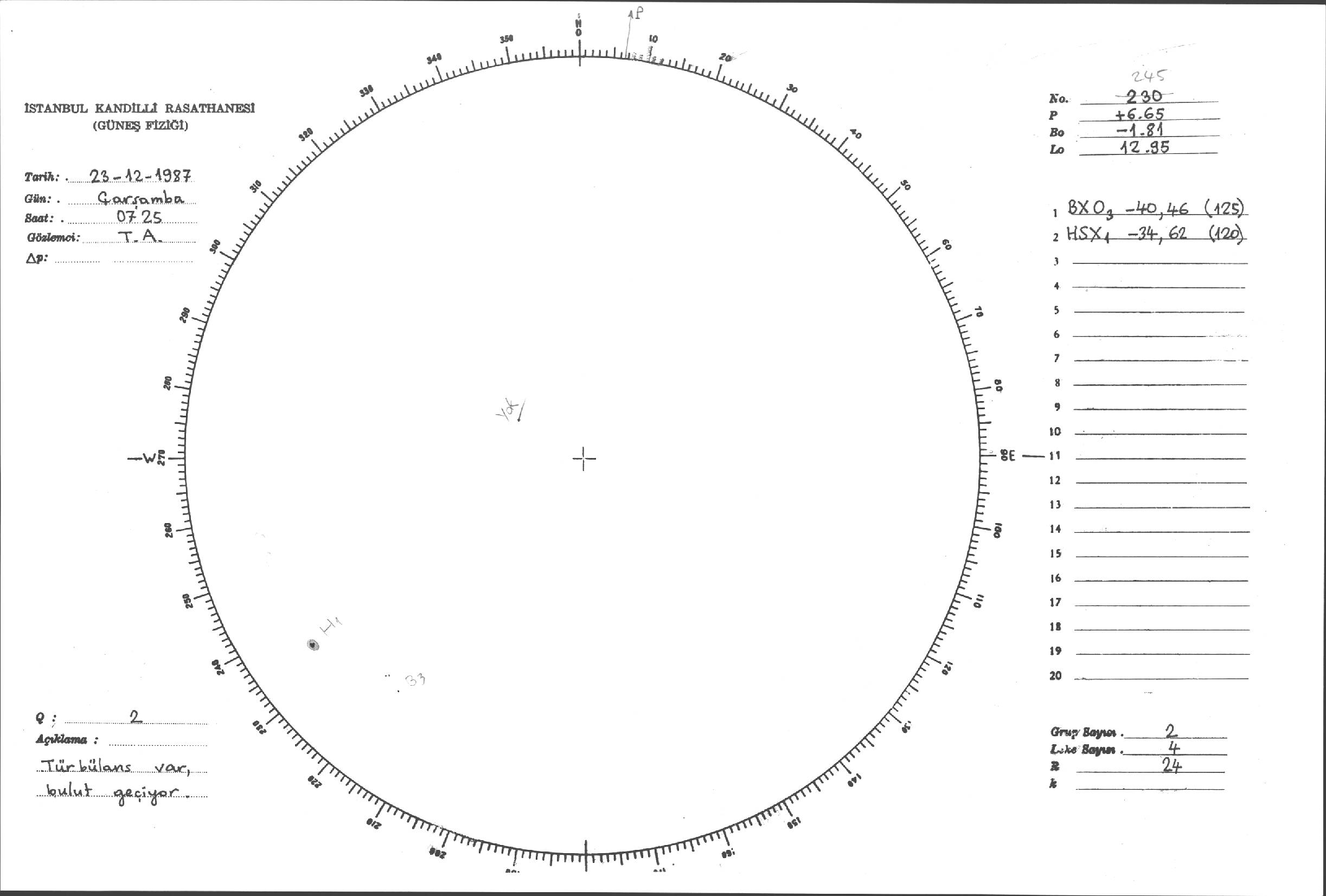 Güneş Lekesi Çizimi - 23.12.1987
