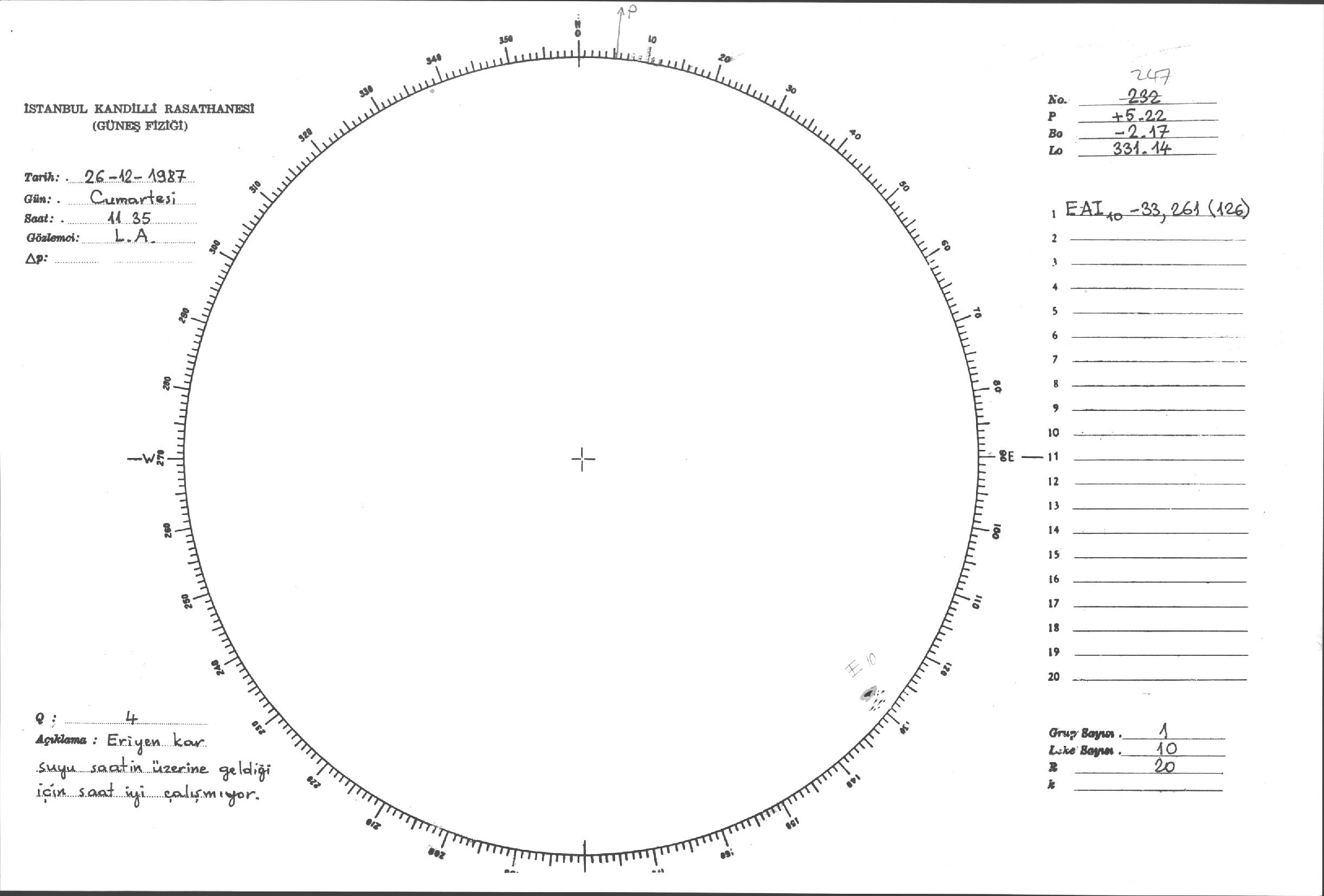 Güneş Lekesi Çizimi - 26.12.1987