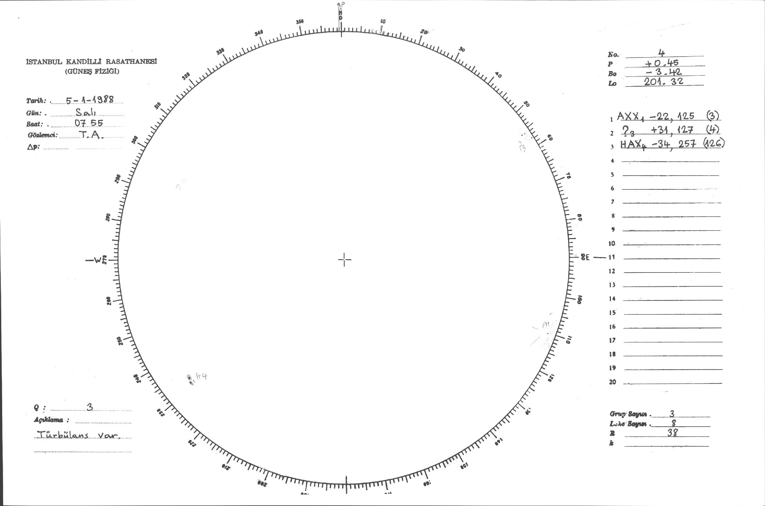 Güneş Lekesi Çizimi - 05.01.1988