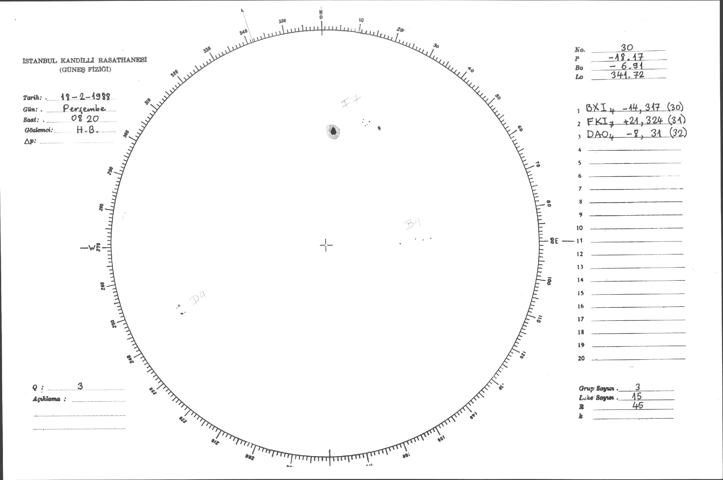 Güneş Lekesi Çizimi - 18.02.1988