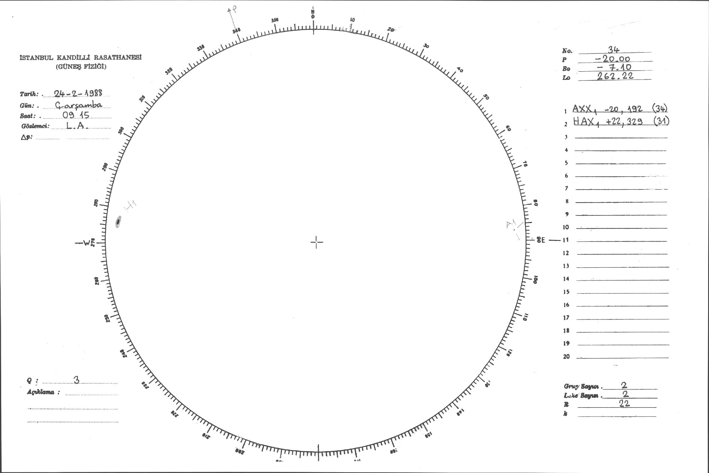 Güneş Lekesi Çizimi - 24.02.1988