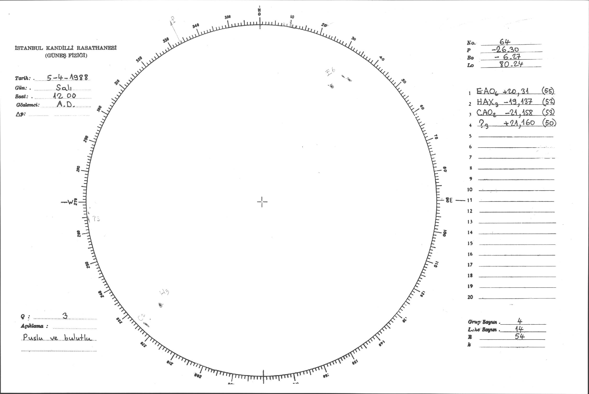 Güneş Lekesi Çizimi - 05.04.1988