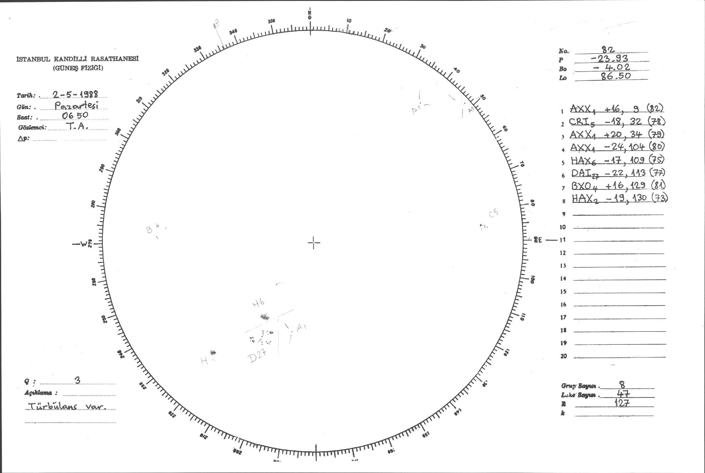 Güneş Lekesi Çizimi - 02.05.1988