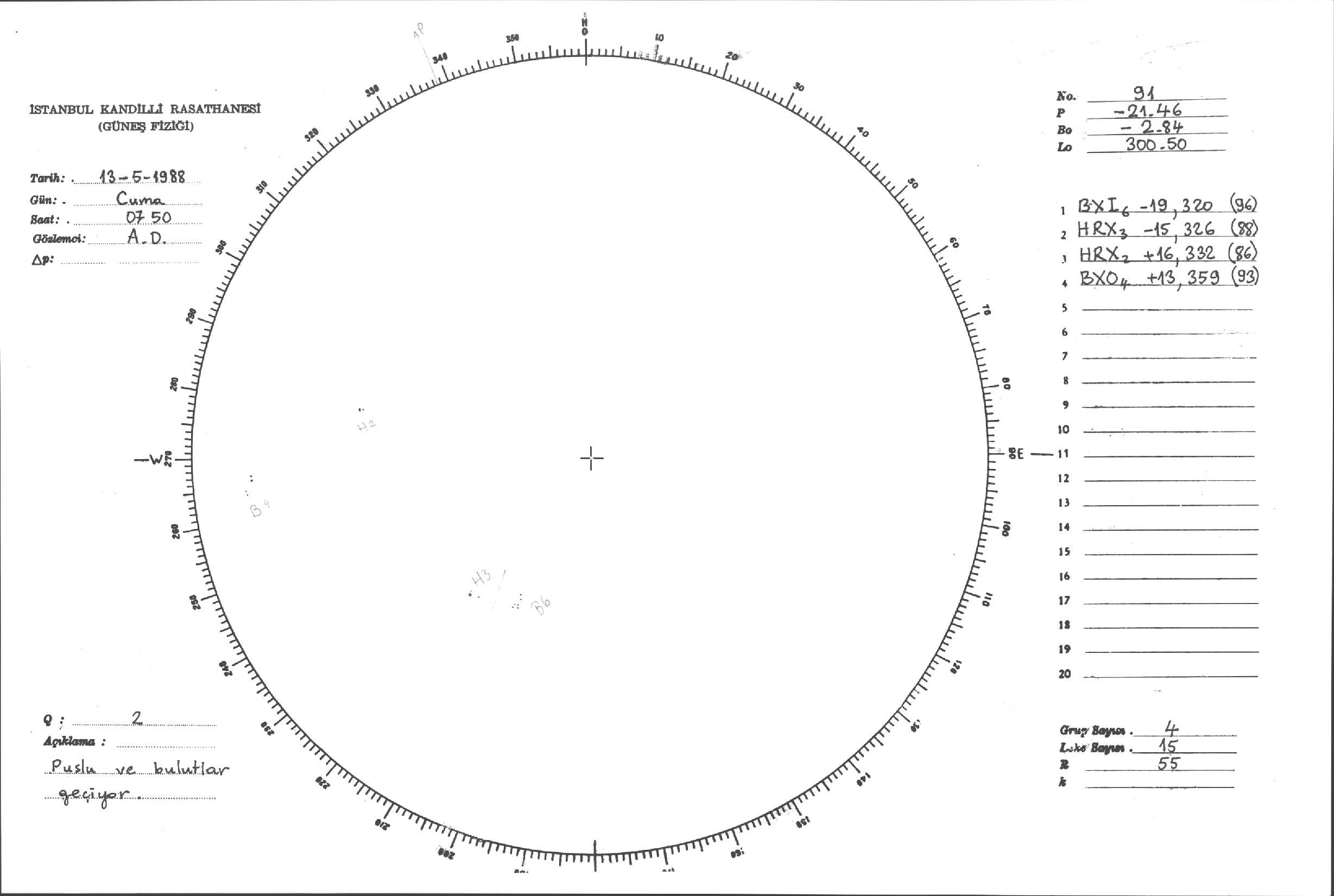 Güneş Lekesi Çizimi - 13.05.1988
