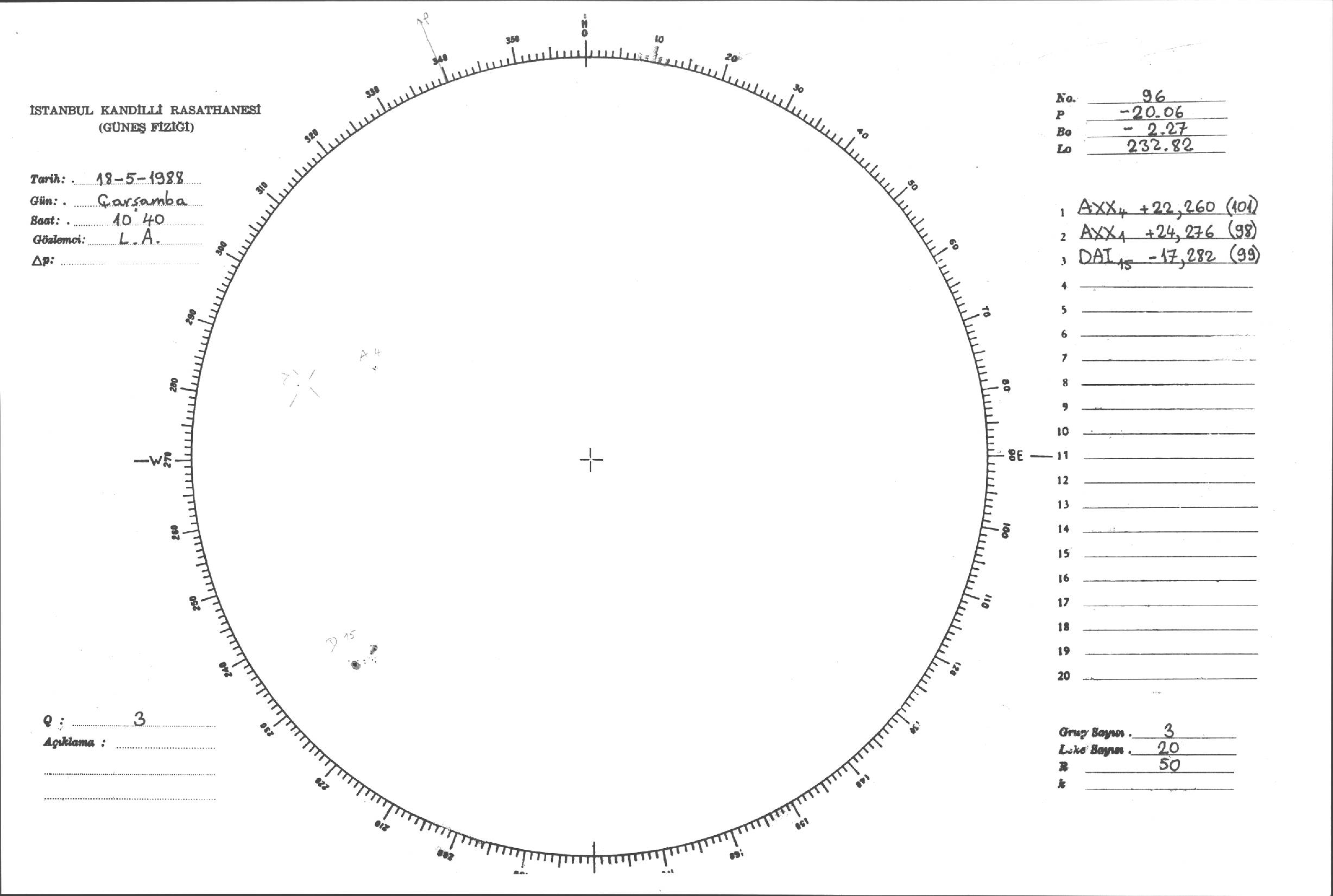 Güneş Lekesi Çizimi - 18.05.1988