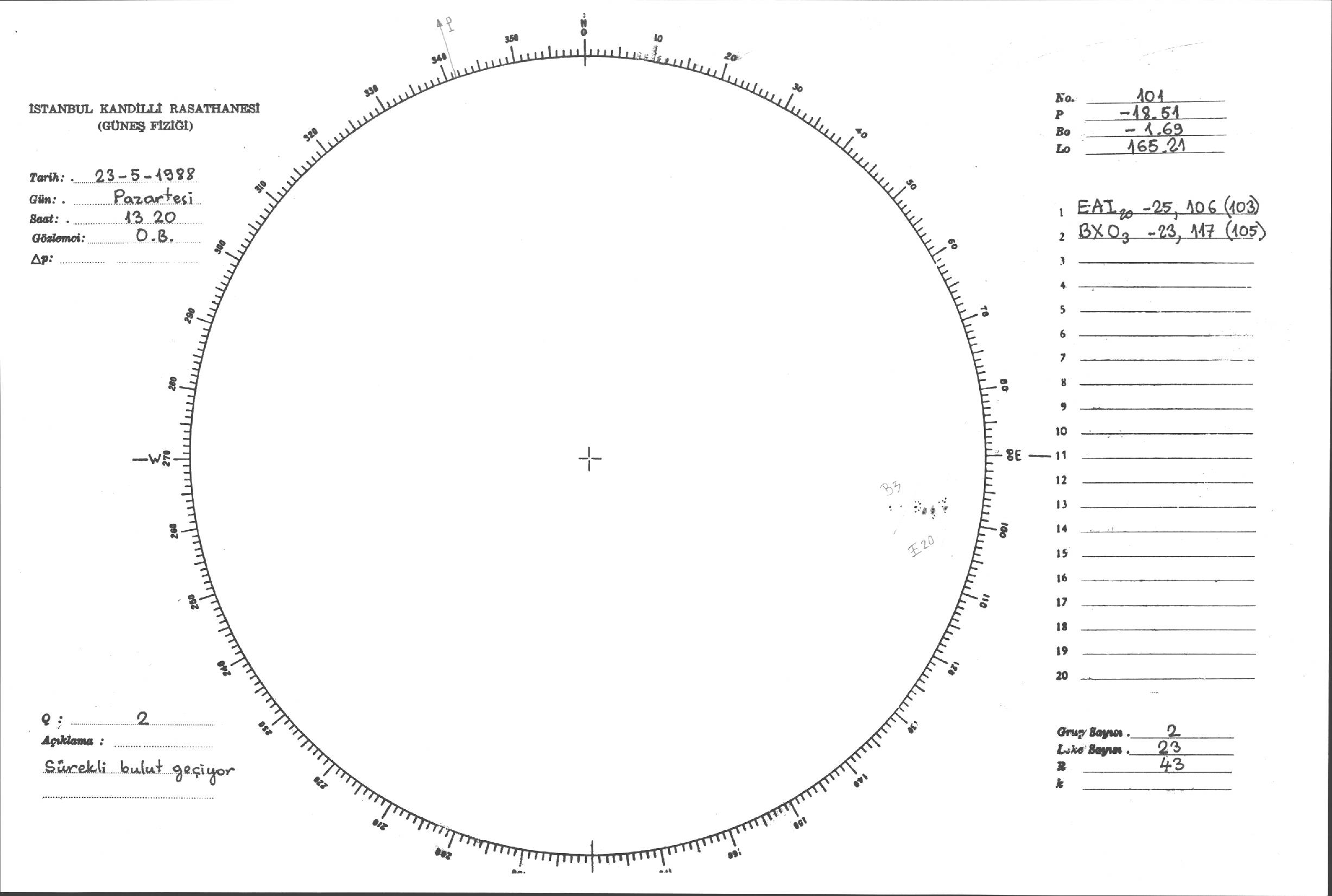 Güneş Lekesi Çizimi - 23.05.1988