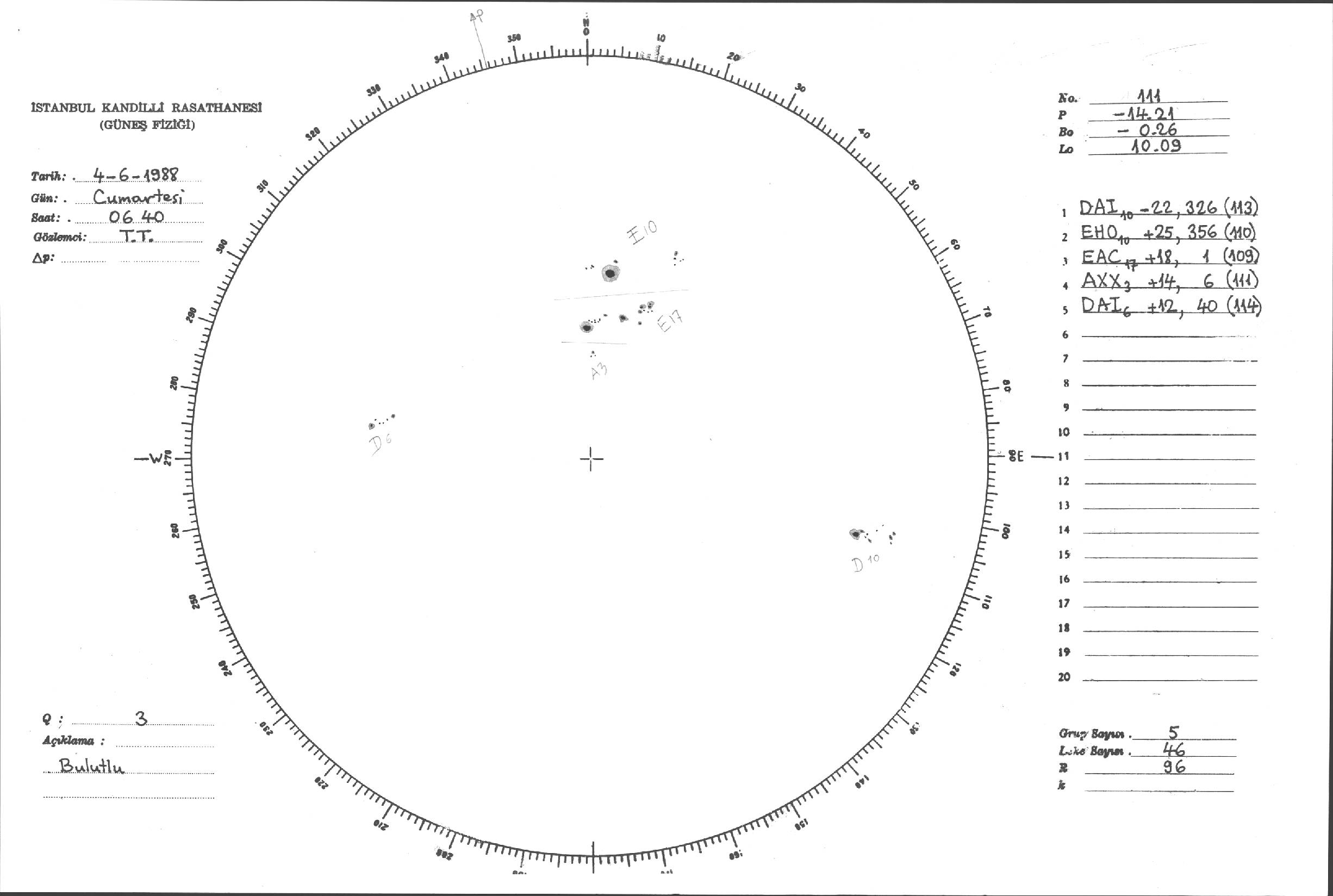 Güneş Lekesi Çizimi - 04.06.1988