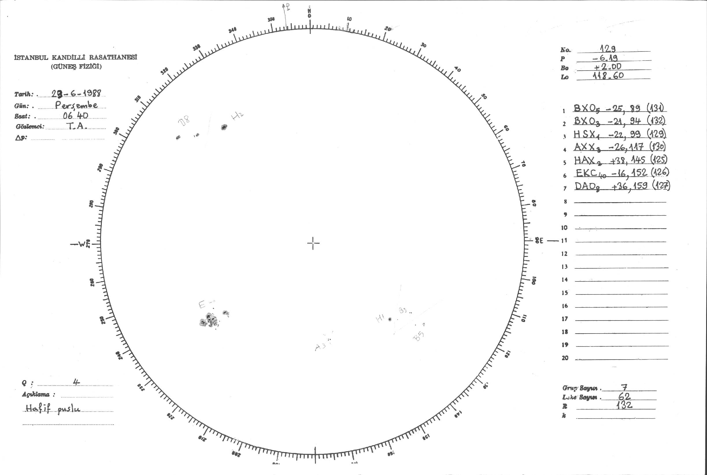 Güneş Lekesi Çizimi - 23.06.1988